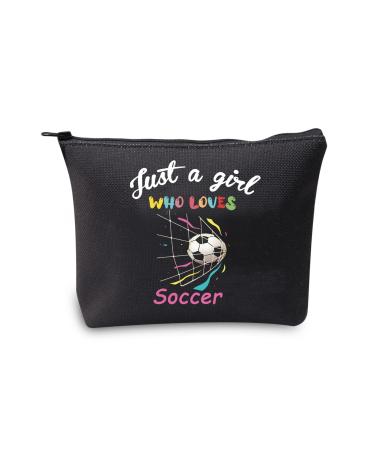 Cmnim girl football gifts just a girl who love football make-up bags travel cosmetic bag gift for soccer players fans just a girl who loves soccer bag black bag