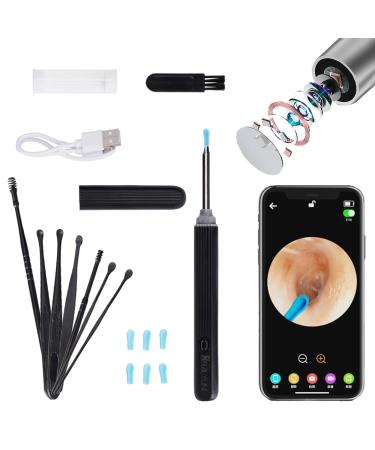 KouRy Portable Ear Wax Removal 1080PHD Smart Visual Ear Cleaner with Camera Tool Kit at Home Ear Infection Detector Ear Wax Remover Otoscope with Light (Color : Black)