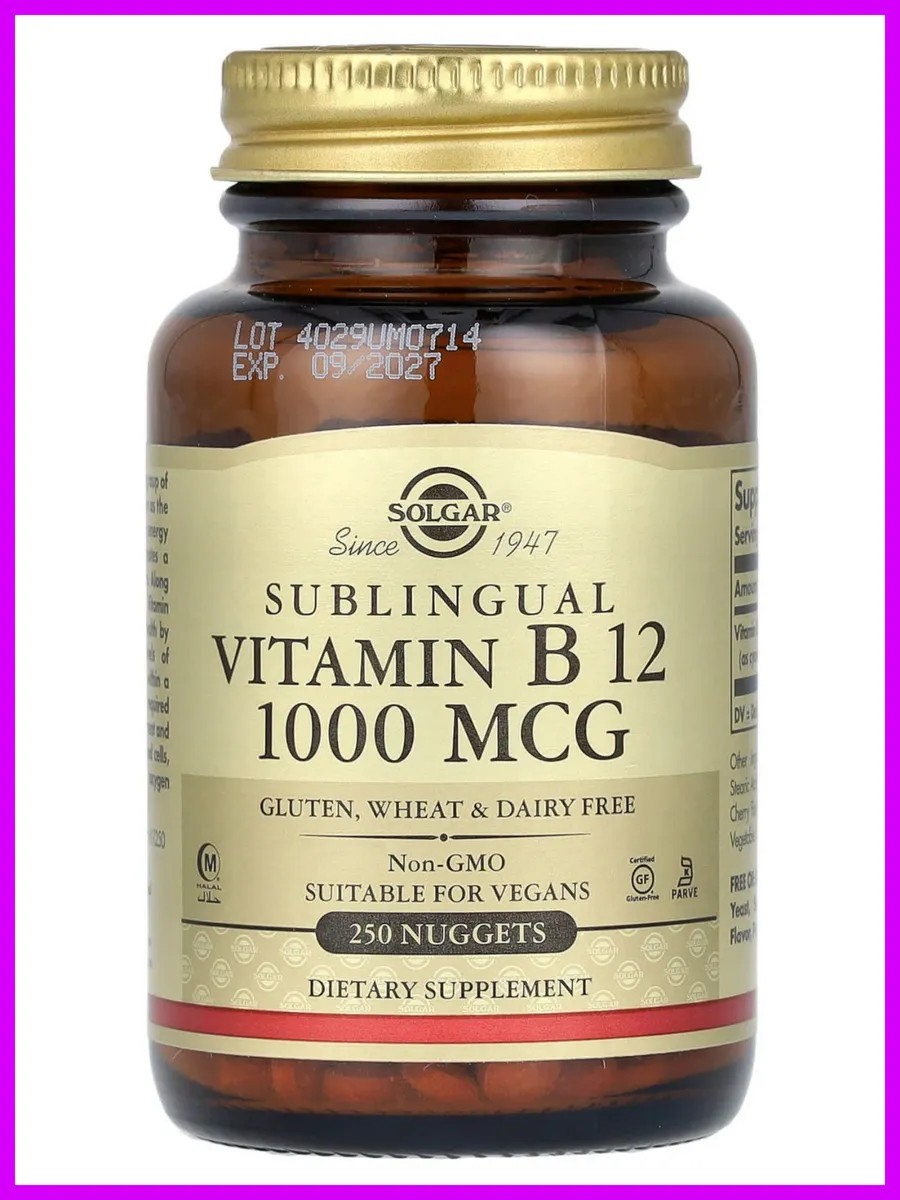 Сублингвальный витамин B12, 1000 мкг, 250 капсул