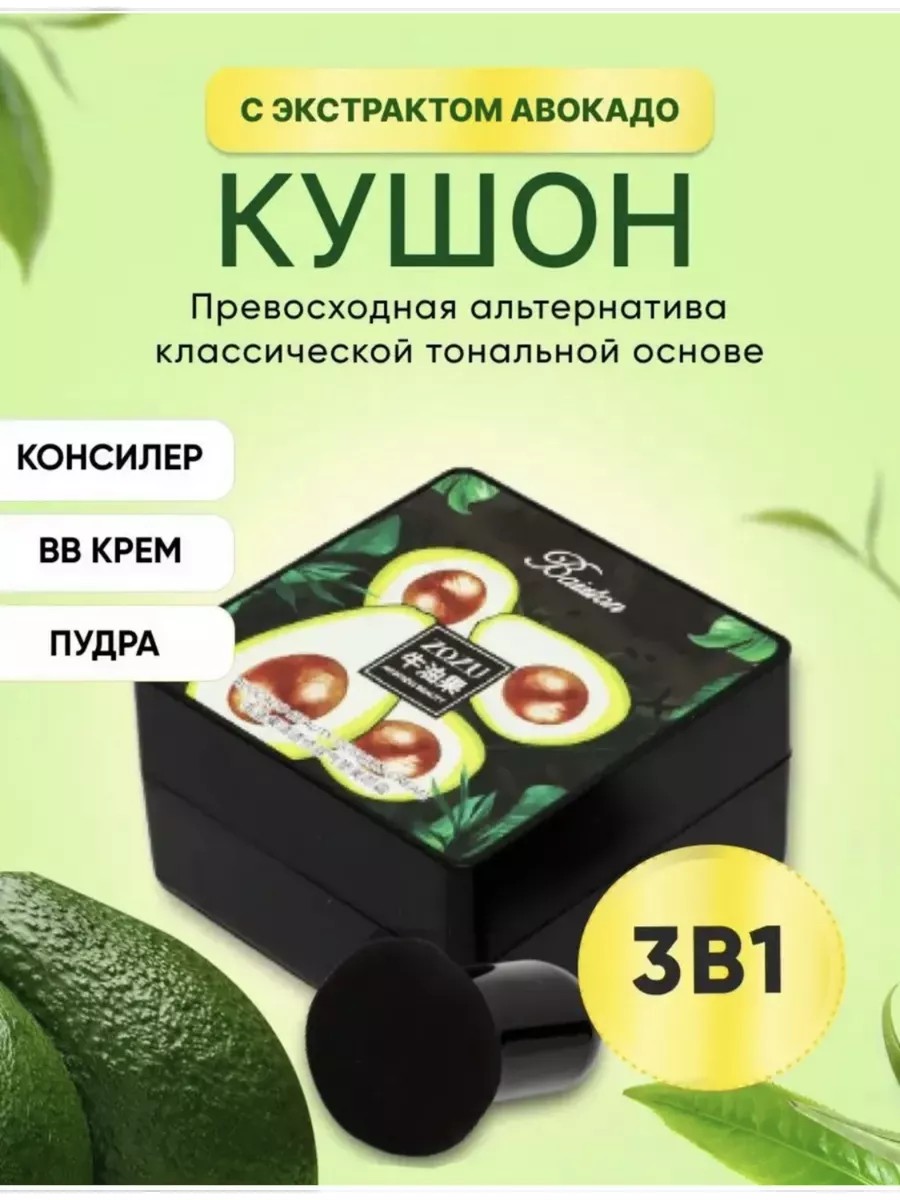 Korean facial cosmetics have been at the peak of popularity for many years – appreciated by people with different skin types at any age. That's why we want to introduce you to a cushion foundation, perfect for any skin type. It combines the benefits of four products: the convenience of a compact mattifying powder that you can take with you everywhere, the lightweight feel of BB and CC creams, the long-lasting durability of a foundation, and the camouflaging properties of a concealer. This cushion with avocado extract gives the face a natural color, evens out and evens out skin tone, conceals enlarged pores and fine lines, and helps with minor pimples and acne. It contains not only decorative but also caring ingredients: for moisturizing and maintaining water balance, for normalizing the sebaceous glands, vitamins, and antioxidants. The cushion contains SPF and protects the skin from photoaging and pigmentation. This makeup product will delight any woman, young woman, and even a teenage girl.