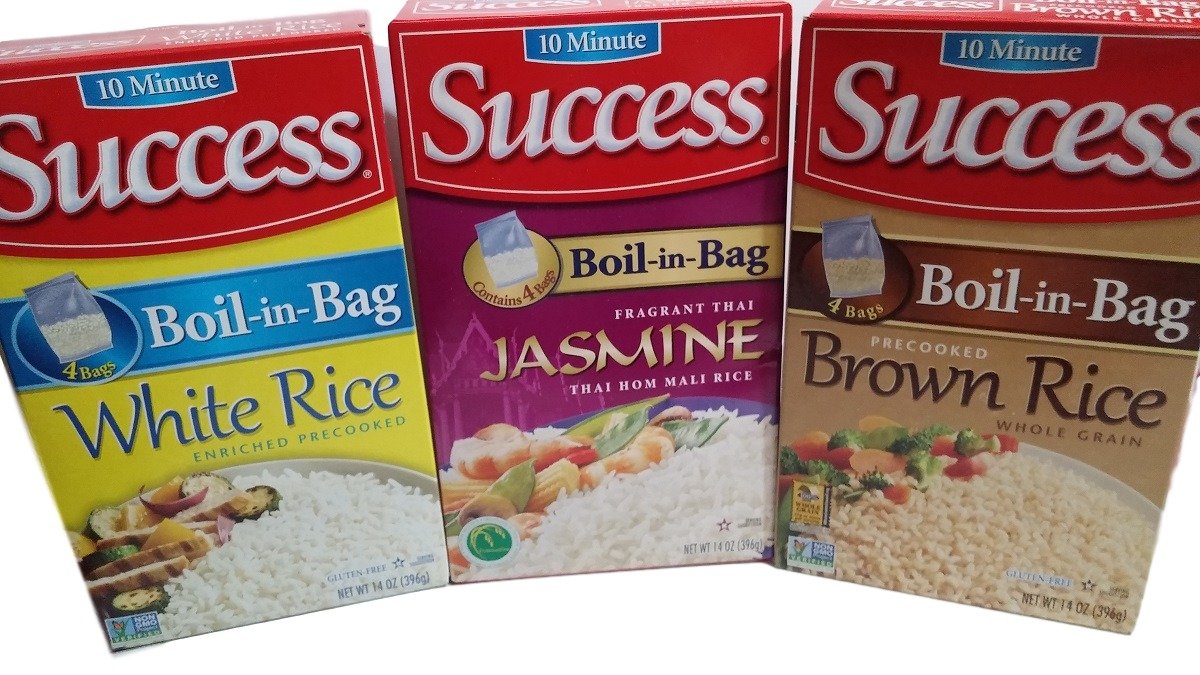 Success Rice, 10 Minute, Boil-In-Bag, Jasmine, Brown, White 4 Bags per Box (Pack of 3)