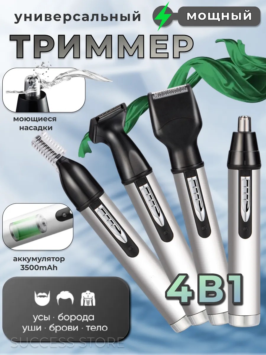Электротриммер King это бритва 4в1 с четырьмя насадками и зарядкой для удаления и стрижки волос из носа и ушей бровь лица и тела, для стрижки и окантовки подбородка бороды, усов на лице отличная замена бритва для носа. Триммер - машинка для бровей может использоваться как мужской, так и женский аксессуар. Данный стайлер - машинка относится к бытовой технике по уходу за телом и может использоваться как для бритья и чистки лицевой части тела, так и интимной зоны, одной из которых является зона бикини. Электрическая бритва имеет встроенный аккумулятор 3500 mA/ч , что позволяет использовать ее в течении 60 минут. Время зарядки около 2 часов. Универсальный электробритва не имеет открытых лезвий, что делает ее безопасной. Корпус сделан из металла и имеет серебристый цвет. В набор входят: электро тример, шнур (провод) для зарядки, четыре моющиеся насадки, кисточка для очистки. Упаковано в фирменную коробку. Для очистки - необходимо снять насадку и почистить ее кистью или под проточной водой. Товар из категории красота и здоровье будет прекрасным подарком на любой праздник!