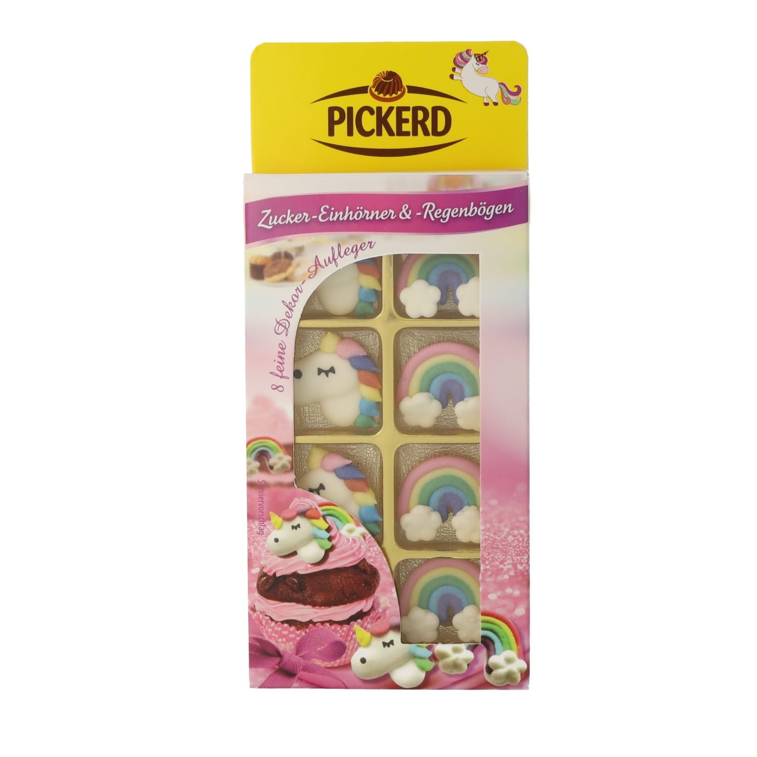 Zuckerdekor / Streudekor "ZUCKER - EINHÖRNER + REGENBOGEN" (Essbar / 90 g - 8 Stück) BACK - DEKORATION