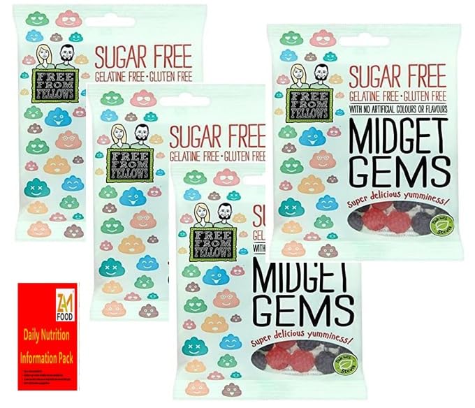 Sugar Free Sweets & Gluten Free Gelatine Free Vegan Free from Fellows Midget Gems Value Pack Sugarless Super Snack Delicious yumminess 70g kids lunch box with zamfoods nutrition pack of 4 3
