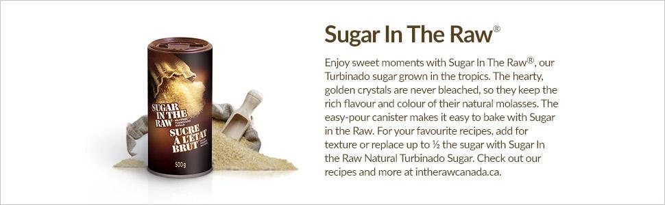 SUGAR IN THE RAW natural turbinado sugar is made using natural cane sugar. The natural molasses remaining in the crytsals produces a distinctive taste, pleg texture and natural golden colour.Certified Kosher. Certified Kosher. Great topping that provides a distinctive crunch as a topping on baked goods, cereal or fruit. Comes in a convenient canister that makes pouring and measuring easy. Natural turbinado sugar with a hint of molasses.