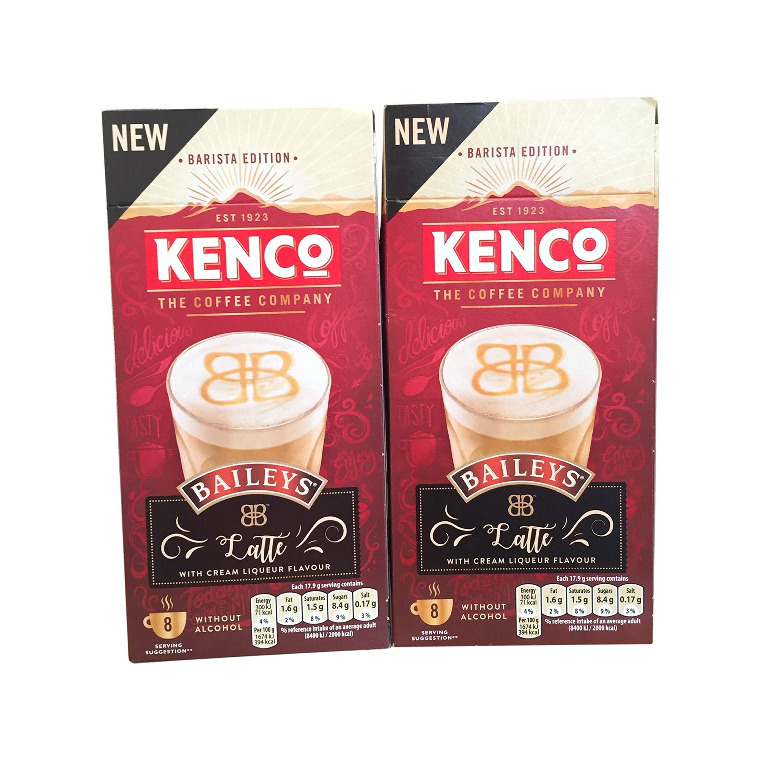 Kenco Barista Edition Baileys Latte Instant Coffee Bundle Pack: 2 Baileys Latte sticks flavored with cream and liqueur. - Blend the flavor of Baileys with the Kenco experience for a unique coffee moment. A smoother, silkier latte with a touch of cream liqueur flavor. Take time for a Kenco Baileys Latte. - Indulgence begins with a Kenco Baileys Latte stick - Instant coffee drink flavored with sugar and skimmed milk powder
