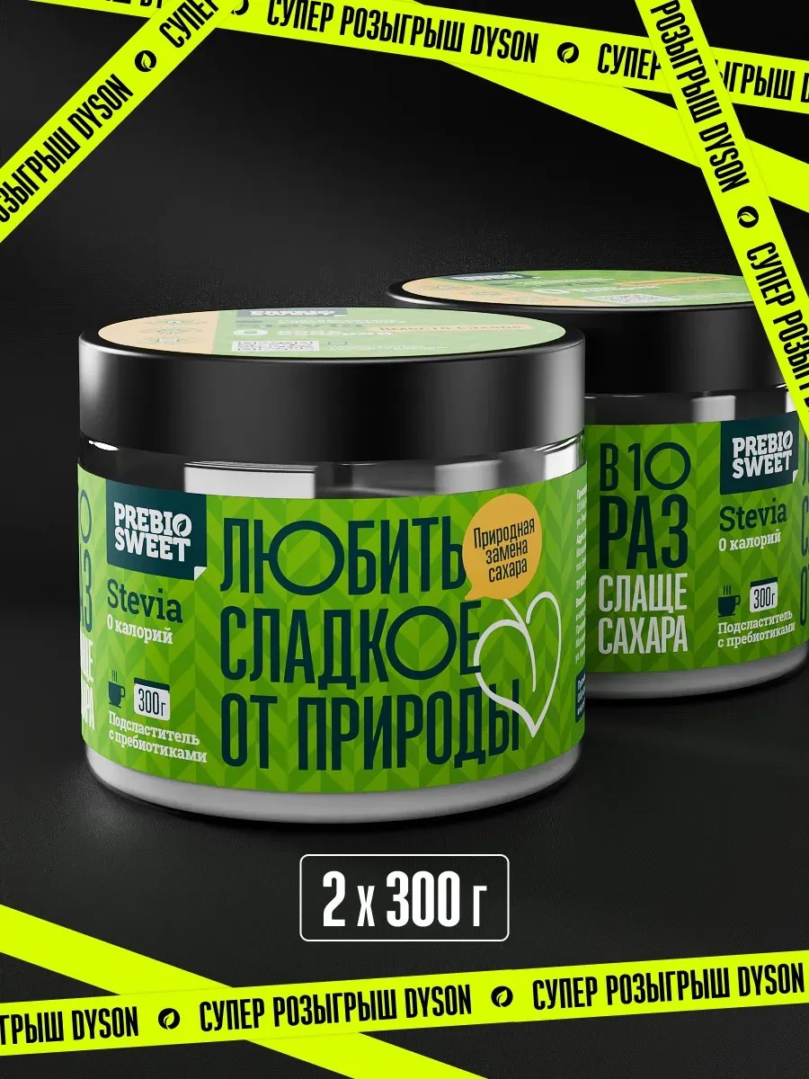 Kcal/calorie/carbohydrate: 0/0/0/0. A new balanced formula without a bitter aftertaste. The functional sweetener Prebiosweet Stevia is calorie-free and beneficial for digestion, 10 times sweeter than sugar. The prebiotic lactulose stimulates the growth of beneficial intestinal microflora. 1 scoop equals 10 g of sugar (2 teaspoons). Prebiosweet Stevia is an indispensable dietary sweetener for low-carb weight loss and healthy eating, for diabetic healthy eating and cosmetic fasting, and for proper dietary nutrition (PP) for athletes. Suitable for vegans and the keto diet. It is used as a sweetener for baked goods, drinks and desserts, coffee and tea additives, and sugar-free sweets. It can be added to healthy foods. Any weight-loss food becomes healthier and more nutritious with it. Calorie-free. Carb-free. Pure sugar sweetness. Heat-stable (can be baked, frozen, etc.). Economical use. Convenient measuring spoon inside. Does not raise blood sugar levels. Suitable for type 2 diabetics. The sugar substitute does not stimulate insulin production.