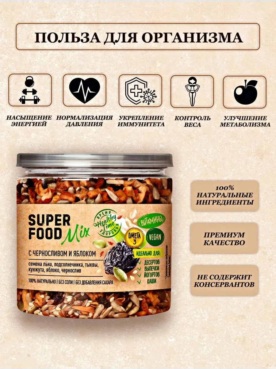 SugasubstituteTech Смесь семян с черносливом и яблоком без сахара 260 г