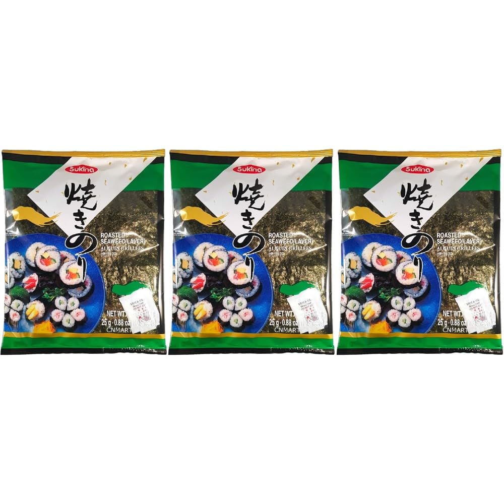 Sukina Korean Roasted Sushi Seaweed Laver 10 Sheets 25g (Pack of 3) by CNMART