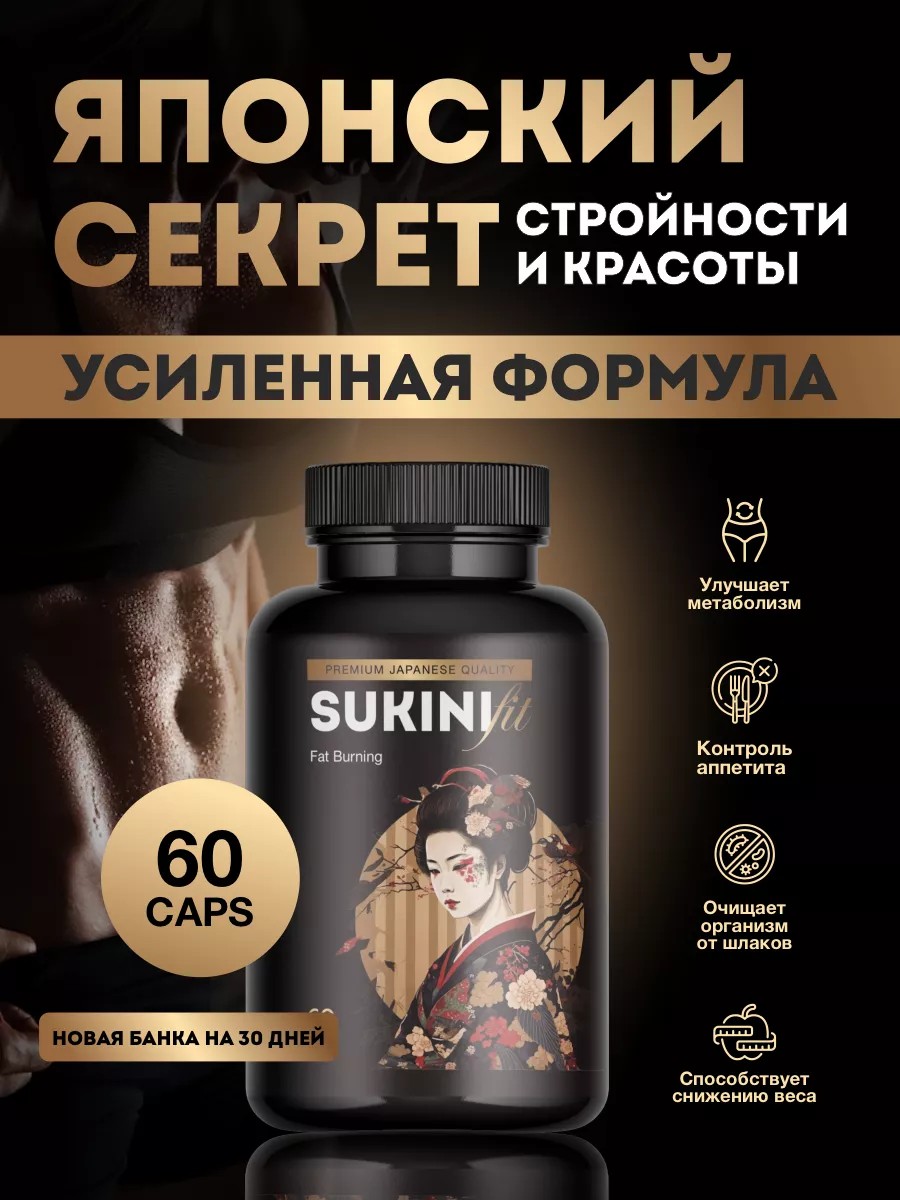 SUKINI capsules are an effective product that ensures safe weight loss for both women and men. Sports nutrition promotes the breakdown of fat cells in the abdomen, thighs, and arms. Take the product correctly during detox, exercise, and weight loss, and you will feel a surge of energy and health.