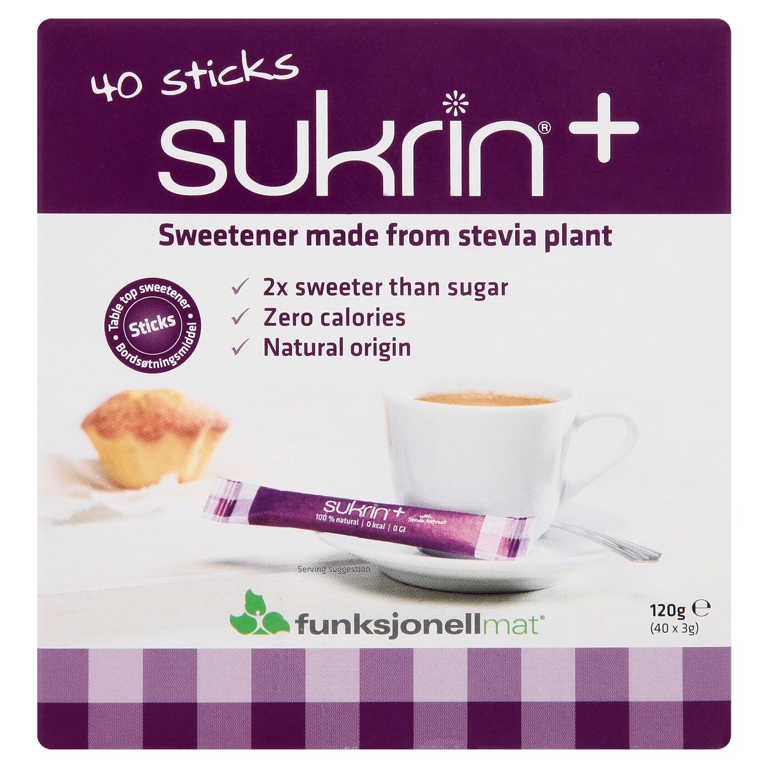 Article description: Twice as s ??Like Herk? Modern sugar and ideal for preparing carbohydrate cakes and cakes Traffic name: Tobes on the basis of erythritus and steviolglycosides. Use: as needed.Note excessive use can have a laxative effect .... Storage: Store cool and dry Ingredients: Sweet agent: erythritus, steviolglycosides.Note: Excessive use can have a laxative effect. Nutritional values: Nutritional values ??per 100g: condensing KJ: 0.00KJ (0%) **, condensing Kcal: 0.00kcal (0%) **, fat: 0.00g (0%) **, - of which saturated fatty acids: 0.00G(0%) **, carbohydrates: 100.00g (38%) **, - of which sugar: 0.00g (0%) **, protein: 0.00g (0%) **, salt: 0.00g(0%) **, Nutritional values ??per portion (25 g): condensing KJ: 0.00kJ (0%) **, condensing Kcal: 0.00kcal (0%) **, fat: 0.00g (0%) **, - of which saturated fatty acids: 0.00g (0%) **, carbohydrates: 25.00g (10%) **, - of which sugar: 0.00g (0%) **, protein: 0.00g (0%) **, salt: 0.00g (0%) **, ** percent of the reference amount for an average adult (8400 kJ/2000 kcal) Warning: The recommended daily dose should not be exceeded.Dietary supplements are not a substitute for a balanced and varied diet.Dietary supplements are to be kept outside the range of children. Ingredients / ingredients Sweet agent: erythritus, steviolglycosides.Note: Excessive use can have a laxative effect. Instructions as needed.Note excessive use can have a laxative effect ... Warnings The recommended daily dose should not be exceeded.Dietary supplements are not a substitute for a balanced and varied diet.Dietary supplements are to be kept outside the range of children. Address manufacturer/importer Sukrin Funksjonell Mat, Gamle Leirdals Vei 12, N-1081 Oslo, Norway More Artikelbeschreibung: Doppelt so s?? wie herk?mmlicher Zucker und ideal f?r die Zubereitung kohlenhydratarmer Kuchen und Torten Verkehrsbezeichnung: Tafelsüße auf der Grundlage von Erythrit und Steviolglycosiden. Verwendung: nach Bedarf. Hinweis Übermäßiger Gebrauch kann abführend wirken.... Lagerung: Kühl und trocken lagern Zutaten: Süßungsmittel: Erythrit, Steviolglykoside. Hinweis: Übermäßiger Gebrauch kann abführend wirken. Nährwerte: Nährwerte pro 100g: Brennwert KJ: 0,00KJ (0%)**, Brennwert kcal: 0,00kcal (0%)**, Fett: 0,00g (0%)**, - davon gesättigte Fettsäuren: 0,00g (0%)**, Kohlenhydrate: 100,00g (38%)**, - davon Zucker: 0,00g (0%)**, Eiweiß: 0,00g (0%)**, Salz: 0,00g (0%)**, Nährwerte pro Portion (25 g): Brennwert KJ: 0,00KJ (0%)**, Brennwert kcal: 0,00kcal (0%)**, Fett: 0,00g (0%)**, - davon gesättigte Fettsäuren: 0,00g (0%)**, Kohlenhydrate: 25,00g (10%)**, - davon Zucker: 0,00g (0%)**, Eiweiß: 0,00g (0%)**, Salz: 0,00g (0%)**, ** Prozent der Referenzmenge für einen durchschnittlichen Erwachsenen (8400 KJ/2000 kcal) Warnhinweis: Die angegebene empfohlene tägliche Verzehrsmenge darf nicht überschritten werden. Nahrungsergänzungsmittel sind kein Ersatz für eine ausgewogene und abwechslungsreiche Ernährung. Nahrungsergänzungsmittel sind außerhalb der Reichweite von Kindern aufzubewahren. INHALTSSTOFFE / ZUTATEN Süßungsmittel: Erythrit, Steviolglykoside. Hinweis: Übermäßiger Gebrauch kann abführend wirken. GEBRAUCHSANWEISUNG nach Bedarf. Hinweis Übermäßiger Gebrauch kann abführend wirken.... WARNHINWEISE Die angegebene empfohlene tägliche Verzehrsmenge darf nicht überschritten werden. Nahrungsergänzungsmittel sind kein Ersatz für eine ausgewogene und abwechslungsreiche Ernährung. Nahrungsergänzungsmittel sind außerhalb der Reichweite von Kindern aufzubewahren. ANSCHRIFT HERSTELLER/IMPORTEUR Sukrin Funksjonell Mat, Gamle Leirdals vei 12, N-1081 Oslo, Norwegen MehrSukrin+ Sticks