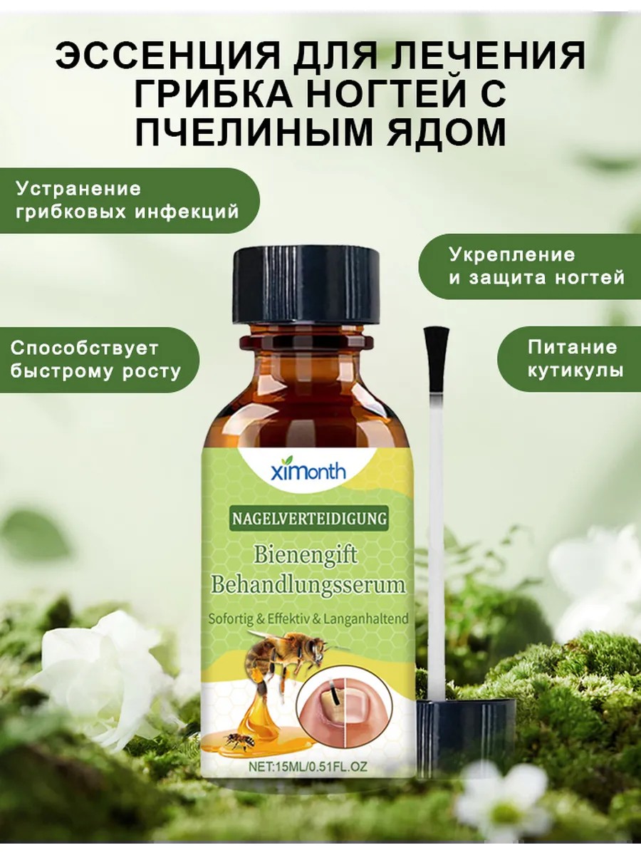 Пчелиный яд содержит активные ингредиенты, которые могут усилить связь между кератиноцитами ногтей, восстановить поврежденную структуру ногтей, эффективно остановить слоение ногтей, растрескивание, а также улучшить общую прочность и жесткость ногтей.