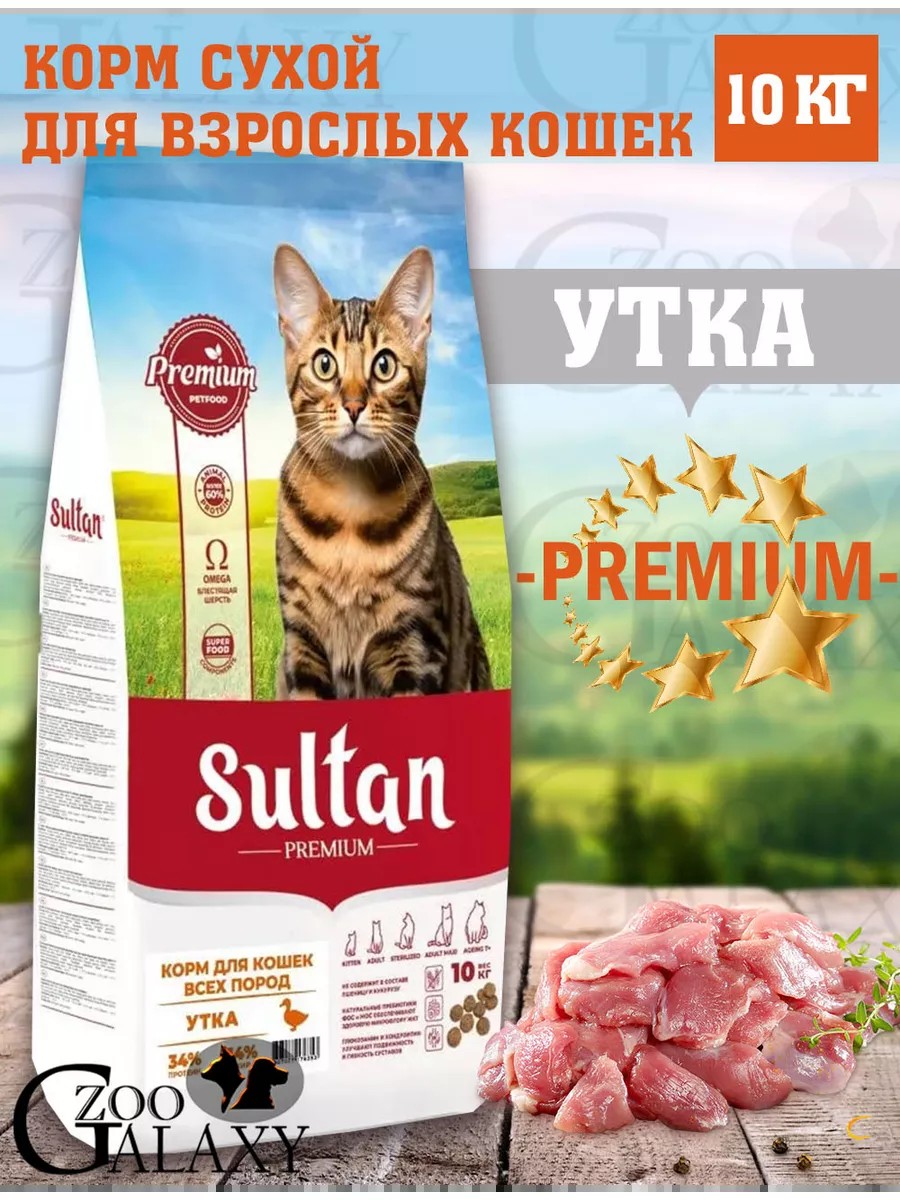 Sultan Корм сухой для взрослых кошек утка 10 кг