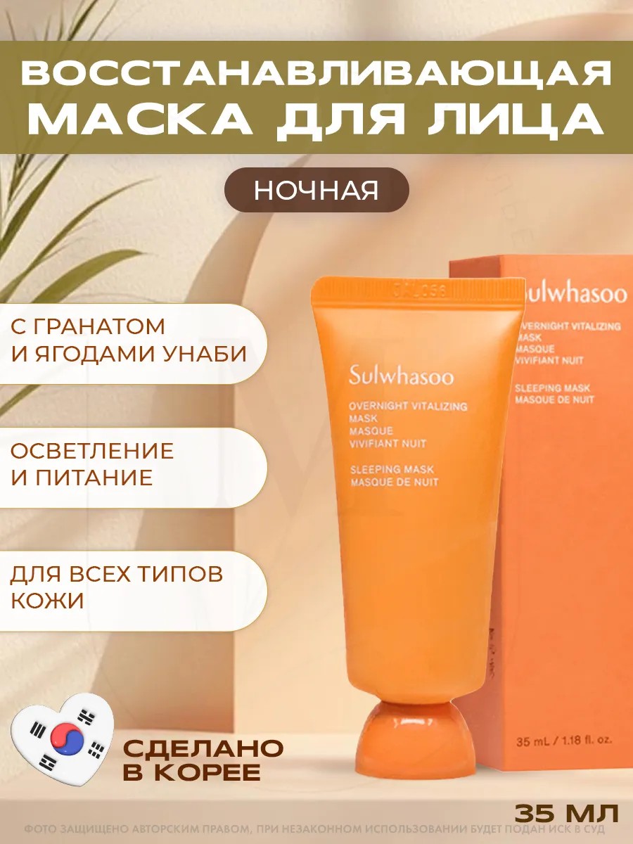 КомплектацияSulwhasoo Ночная восстанавливающая маска для лица Overnight Vitalizing Mask, 35мл