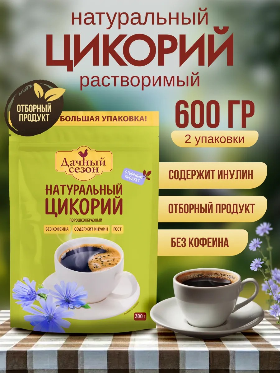 Откройте для себя уникальный напиток — цикорий «Дачный сезон», который станет отличной альтернативой кофе для тех, кто ценит здоровье и хороший вкус. Растворимый цикорий обладает мягким вкусом, который подарит вам приятные ощущения каждый раз, когда вы его пробуете. Этот натуральный цикорий,получаемый из корней растения, он не только вкусен, но и полезен, благодаря своим многочисленным положительным свойствам.Сублимированный цикорий идеально подойдет для тех, кто ищет здоровую замену привычному растворимому кофе, цикорий не содержтит кофеина, а значит, он не повысит артериальное давлении. Он способствует поддержанию тонуса сосудов и положительно влияет на нервную систему, что делает его отличным выбором для вашего рациона. Этот напиток также полезен для кроветворной системы, обладает благотворным действием на почки и помогает восстанавливать микрофлору кишечника.Цикорий помогает в усвоении кальция и идеально подходит для диабетических продуктов, поскольку способствует нормализации уровня сахара в крови. Кроме того, цикорий способствует похудению и улучшению метаболизма, что делает его незаменимым помощником в борьбе с вредным холестерином и шлаками. Безусловно, экологически чистый цикорий станет настоящим подарком для организма.