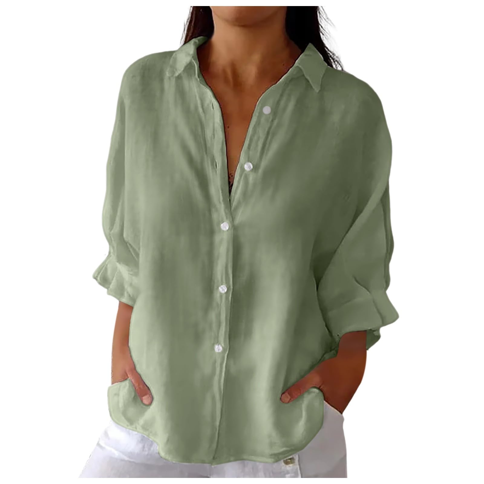 Summer Linen Tops for Women Sale Clearance Summer Tees Long Sleeve Half Sleeve V-Neck Cotton and Linen Loose Shirt Blouses Ladies Tshirt Casual Flowy Beach T-Shirt Tops 3200-qppoj-e-green XL