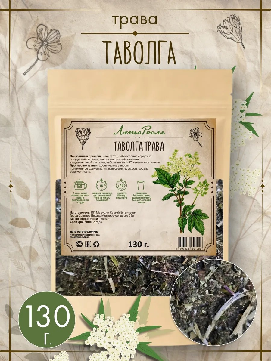 | Комплектация | Таволга трава (лабазник) 130 грамм - 1 упаковка |