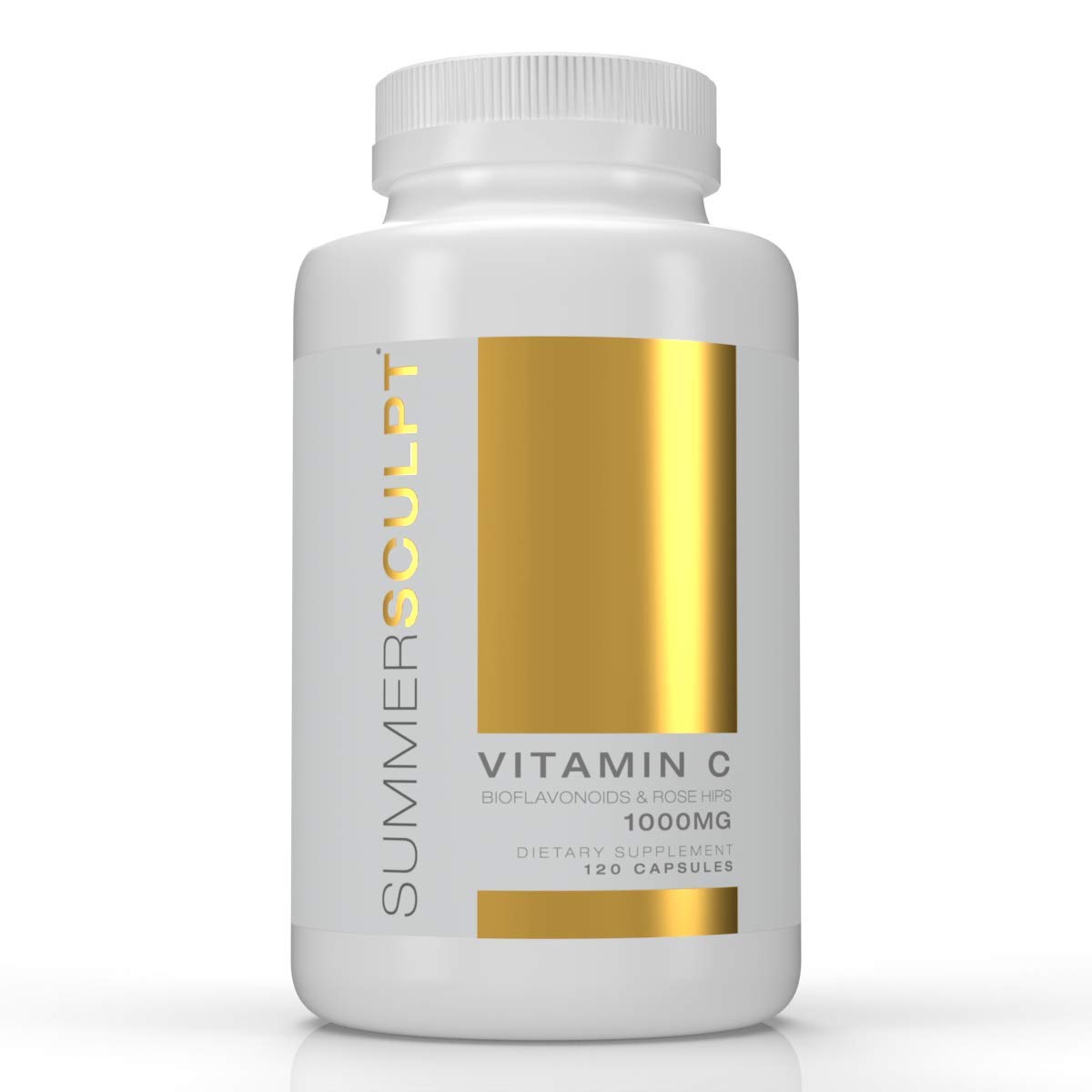 SummerSculpt Vitamin C 1000 mg Daily Immune Support with Rose HIPS & Citrus Bioflavonoids Healthy Skin & Joints Buffered Non-GMO Non Acidic 120 Capsules