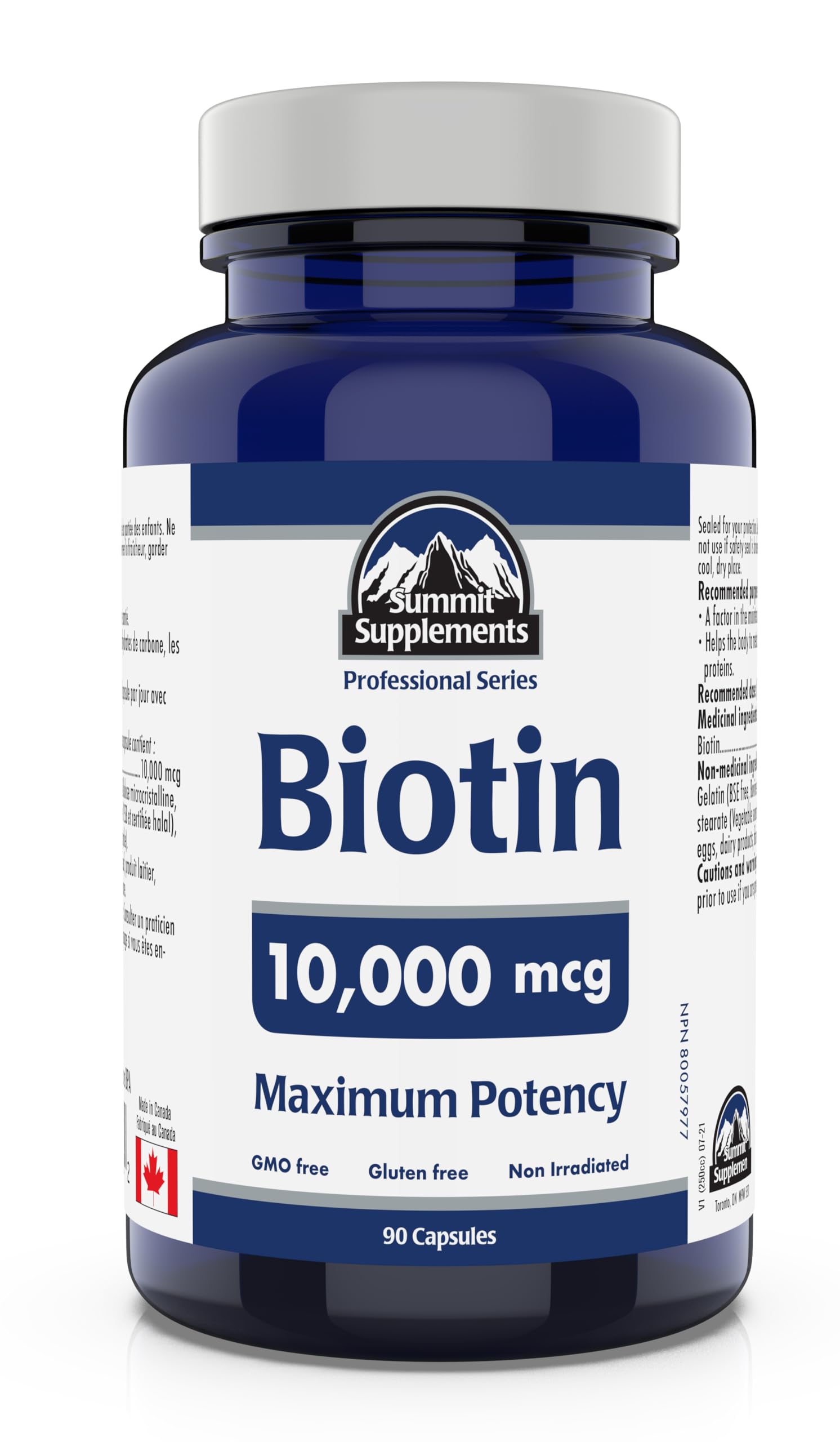 Summit Supplements - Biotin 10 000 mcg 90 Capsules - Maximum Potency - Promotes Healthy Hair Skin and Nails - Helps to Maintain and Support The Body's Ability to Metabolize Nutrients