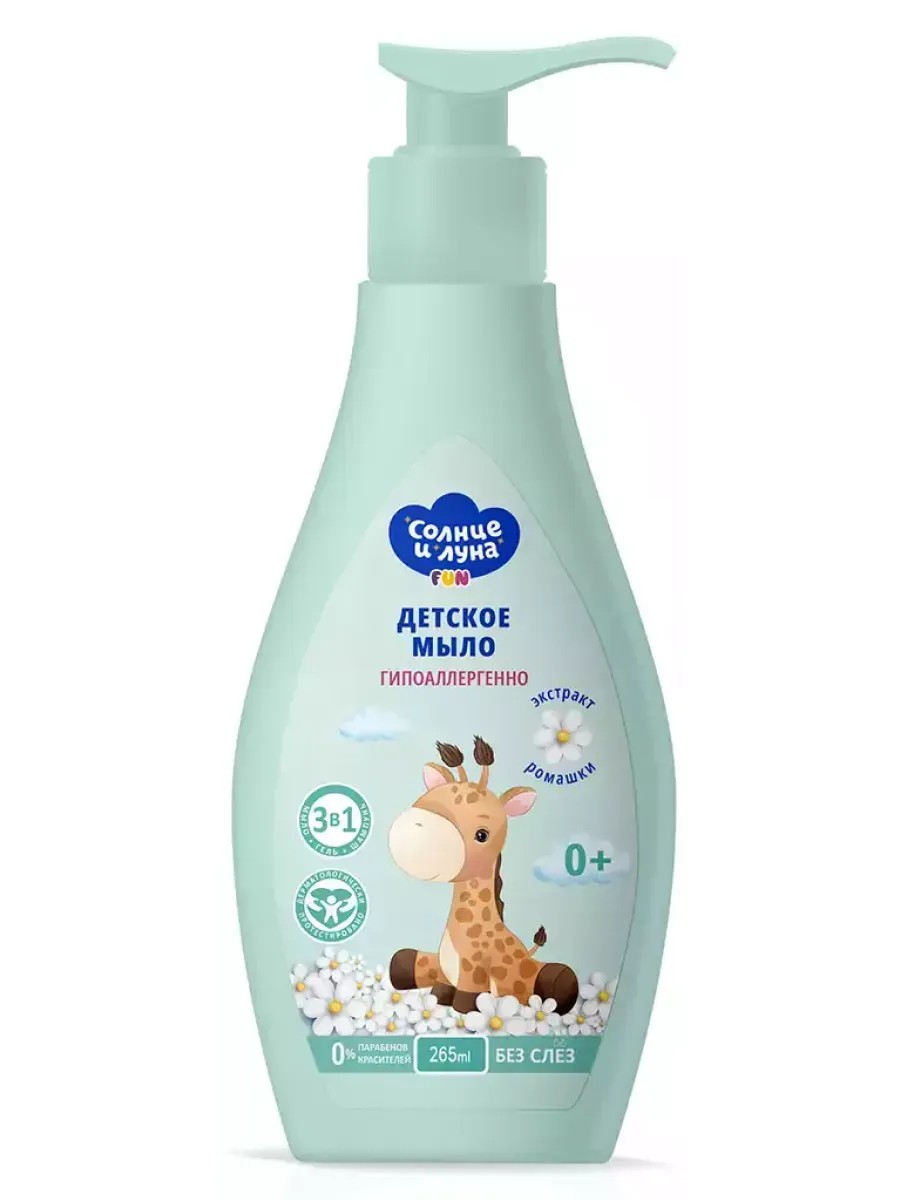Гипоаллергенное жидкое мыло подходит для бережного ухода за нежной кожей малыша с первых дней жизни. Мягкая формула способствует деликатному очищению, не сушит кожу и не щиплет глазки. Ромашка оказывает мягкий антибактериальный эффект, успокаивает и увлажняет кожу, защищает от внешних воздействий. Мыло можно использовать для ежедневного подмывания и купания детей, подходит для чувствительной кожи. Жирафик бренда Солнце и Луна готов стать помощником каждой заботливой маме на пути безопасного ухода за любимым малышом!