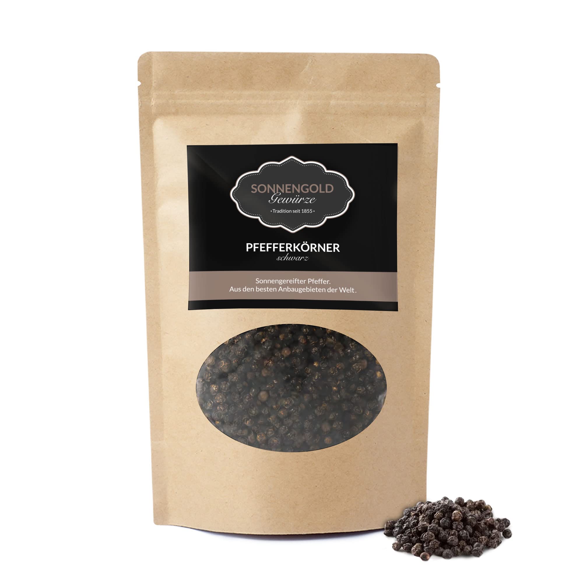 Sun Gold Sonnengold Black Pepper black peppercorns in premium quality double sieved and cleaned fresh sundried from Ecuador natural & pure 120 g
