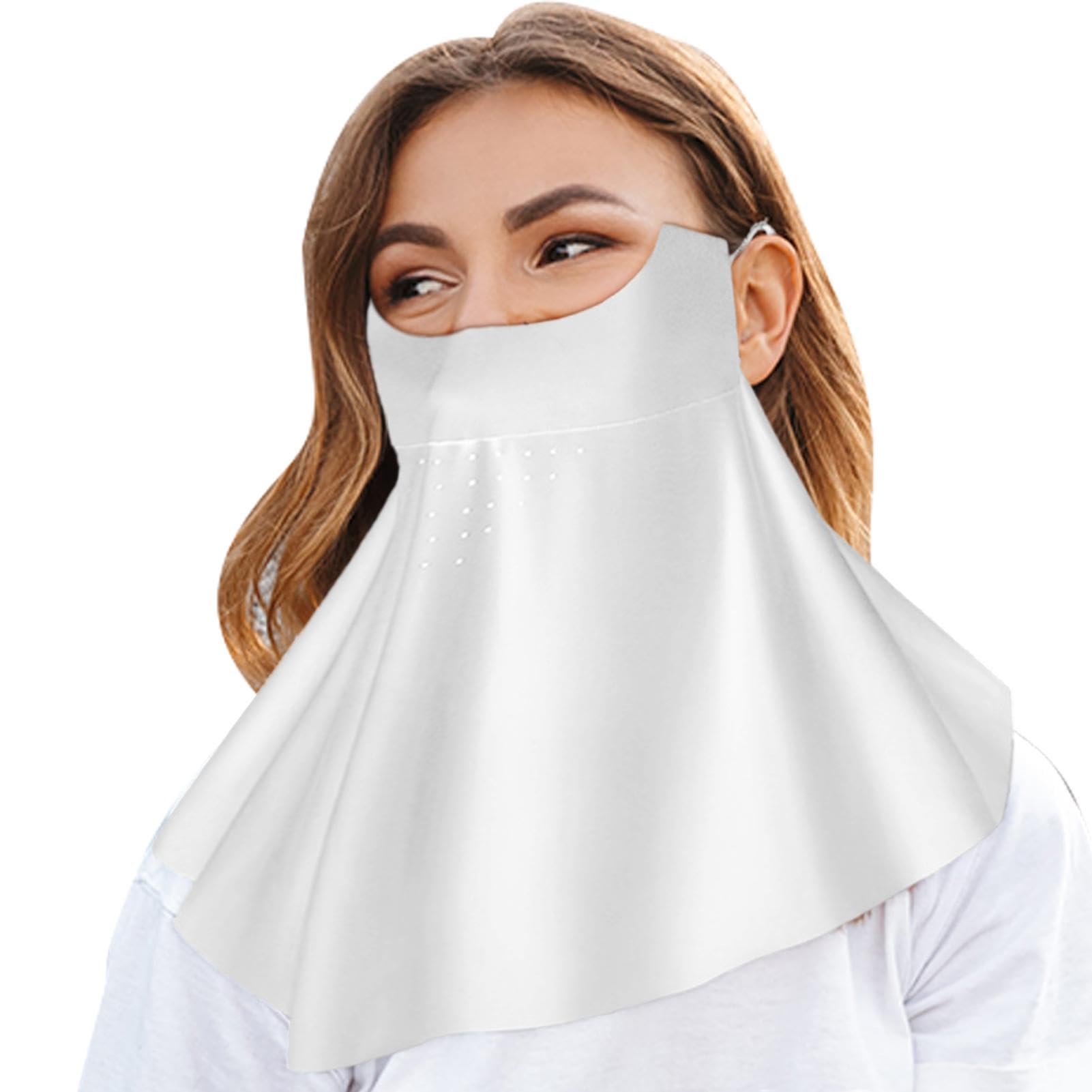 Sun Protection Masque | Sun Masque SPF Face Cover Sun Face Cover Breathable Full Face Shield Face Scarf Cover Cooling Sunscreen Masque for Men Women White