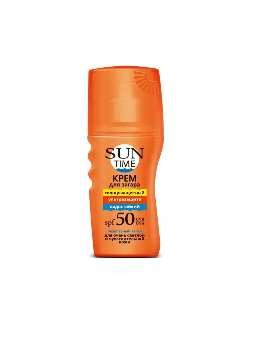 Sun Time Крем для безопасного загара Ультразащита Spf 50, 150 мл. Крем обеспечивает максимальную степень защиты от негативного воздействия УФ-лучей спектров А и B для очень светлой и чувствительной к солнцу кожи. Средство хорошо увлажняет, препятствует преждевременному старению, повышенной пигментации и появлению раздражений. Продукт быстро впитывается, не оставляя жирной пленки и ощущения липкости.