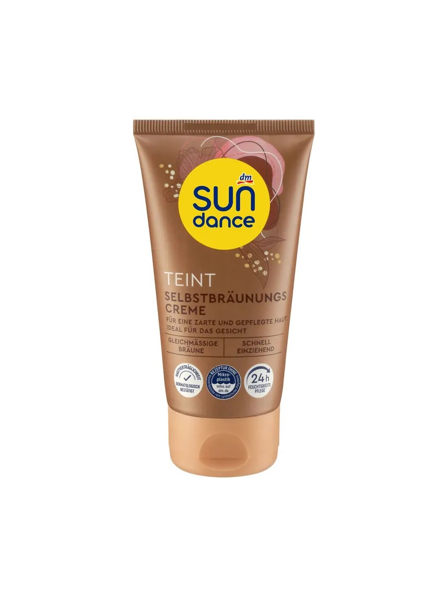 Крем для самостоятельного создания загара Sundance легко наносится и создает естественный, ровный летний загар в течение нескольких часов. Он имеет 24-часовой увлажняющий комплекс для нежной и эластичной кожи, а содержащийся в нем витамин Е предотвращает преждевременное старение кожи, вызванное светом. Переносимость кожи подтверждена дерматологически. Рецепт без микропластика и водорастворимых чисто синтетических полимеров. Упаковка изготовлена не менее чем из 50% переработанного материала.
