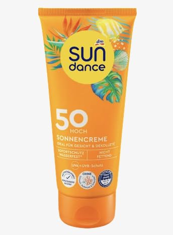 The vegan sunscreen SPF 50 from SUNDANCE is a 24-hour moisturizer that provides a pleasant skin feeling and provides immediate and reliable protection against sunburn. When used regularly, it prevents premature skin aging and pigment spots caused by light. Skin friendliness dermatologically tested. Water resistant ( independent testing institute confirmed: after 40 minutes in water, at least 50 of the acclaimed protection factor remains). Out of respect for our oceans without the UV filters octinoxate, oxybenzone and octocrylics. Vegan. INGREDIENTS Aqua, dibutyl adipate, glycerin, diethylamino hydroxybenzoyl hexyl benzoate, C12-15 alkyl benzoate, ethylhexyl salicylate, ethylhexyl triazone, bis-diglyceryl polyacyladipate-2, potassium cetyl phosphate, bisethylhexyloxyphenol methoxypphenol yl triazine, Copernicia Cerifera Cera, hydrogenated palm glycerides, tocopheryl acetate, phenylbenzimidazole sulfonic acid, hydroxyacetophenone, Oryza Sativa Bran Cera, Squalane, microcrystalline cellulose, perfume, potentassium hydroxide, caprylyl glycol, decylene glycol, Succinoglle. ycane, tetrasodium iminodisuccinate, galactoarabinan, cellulose gum, xanthan gum, limonene, alpha-isomethyl ionone, caprylic hydroxamic acid, benzyl alcohol. INSTRUCTIONS FOR USE Use a modest amount and sprinkle on face and décolleté. Apply 24 hours before the sun show and reapply every 2 hours or after sweating bathing. SAFETY WARNING Apply sunscreen liberally before being in the sun. Small amounts significantly reduce protection performance. Apply multiple times to maintain protection, especially when sweating or after swimming and drying off. Avoid intense midday sun. Protect babies and toddlers from direct sunlight, use sunscreen with a high protection factor (LSF greater than 25) and protective clothing. Sunscreens with a high protection factor also do not provide complete protection against UV rays. Despite using sunscreen, do not stay in the sun for too long. Any sunburn permanently damages the skin and should be avoided. Excessive sunbathing poses a serious health risk. Avoid contact with the eyes. Apply only to intact skin. Allow sunscreen to fully absorb, especially before you are in the water. Avoid contact with clothing, textiles and surfaces. The formation of permanent contact marks or changes is possible even after complete absorption. See moreUVA UVB protection. Without octocrylene. Not greasy. Ideal for face and décolleté.SUNDANCE Zonnebrandcrème SPF 50, 100 ml De veganistische zonnecrème SPF 50 van SUNDANCE is een 24-uurs vochtverzorging, die voor een aangenaam huidgevoel zorgt en direct en betrouwbaar tegen zonnebrand beschermt. Hij voorkomt bij regelmatig gebruik voortijdige, door licht veroorzaakte huidveroudering en pigmentvlekken. Huidvriendelijkheid dermatologisch getest. Waterbestendig ( onafhankelijk testinstituut bevestigd: na 40 minuten verblijf in het water blijft ten minste 50 van de uitgeroemde beschermingsfactor bestaan). Uit respect voor onze oceanen zonder de uv-filters octinoxaat, oxybenzon en octocrylen. Veganistisch. INGREDIËNTEN Aqua, dibutyl adipate, glycerine, diethylamino hydroxybenzoyl hexyl benzoaat, C12-15 alkyl benzoaat, ethylhexyl salicylaat, ethylhexyl triazone, bis-diglyceryl polyacyladipate-2, potassium cetyl fosfaat, bisethylhexyloxyfenol methoxypfenol yl triazine, Copernicia Cerifera Cera, gehydrogeneerde palmglycerides, tocoferylacetaat, fenylbenzimidazole sulfonic zuur, hydroxyacetofenone, Oryza Sativa Bran Cera, Squalane, microkristallijne cellulose, parfum, potentassium hydroxide, caprylyl glycol, decylene glycol, Succinoglle. ycaan, tetrasodium Iminodisuccinaat, galactoarabinaan, cellulose gum, xanthaangom, limoneen, alfa-isomethyl ionone, caprylhydroxamische zuur, benzylalcohol. GEBRUIKSAANWIJZING Gebruik een bescheiden hoeveelheid en besprenkeld op het gezicht en decolleté. Breng 24 uur voor de zonneshow aan en breng elke 2 uur opnieuw aan of na het zweten baden. VEILIGHEIDSWAARSCHUWING Breng de zonnebrandcrème royaal aan voordat je in de zon bent. Kleine hoeveelheden verminderen de beschermingsprestaties aanzienlijk. Meervoudig aanbrengen om de bescherming te behouden, vooral bij het zweten of na het zwemmen en afdrogen. Vermijd intensieve middagzon. Bescherm baby's en peuters tegen direct zonlicht, zonnebrandcrème met een hoge beschermingsfactor (LSF groter dan 25) en beschermende kleding gebruiken. Ook zonnebrandmiddelen met een hoge beschermingsfactor bieden geen volledige bescherming tegen uv-stralen. Blijf ondanks het gebruik van een zonnebrandmiddel niet te lang in de zon. Elke zonnebrand beschadigt de huid duurzaam en moet worden vermeden. Overmatig zonnebaden vormt een ernstig gezondheidsrisico. Vermijd contact met de ogen. Alleen op intacte huid aanbrengen. zonnebrandcrème volledig laten intrekken, vooral voordat je in het water bent. Vermijd contact met kleding, textiel en oppervlakken. De vorming van permanente contactvlekken of veranderingen is ook na volledig intrekken mogelijk. Meer bekijkenUVA UVB-bescherming. Zonder octocryleen. Niet vettig. Ideaal voor gezicht en decolleté.
