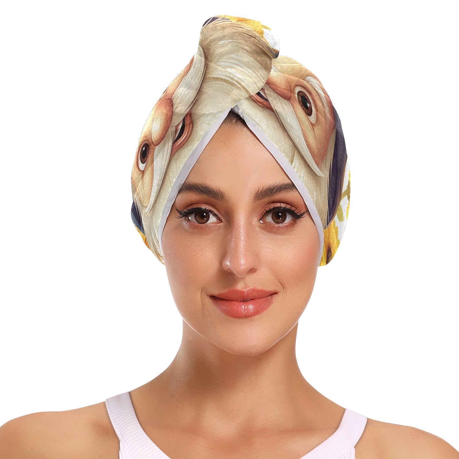 Sunflowers Dwarf Hair Towel 2 Pack Super Absorbent Hair Drying Towel Quick Dry Hair Turbans Head Towel with Button Twisty Wrap for Women Girls