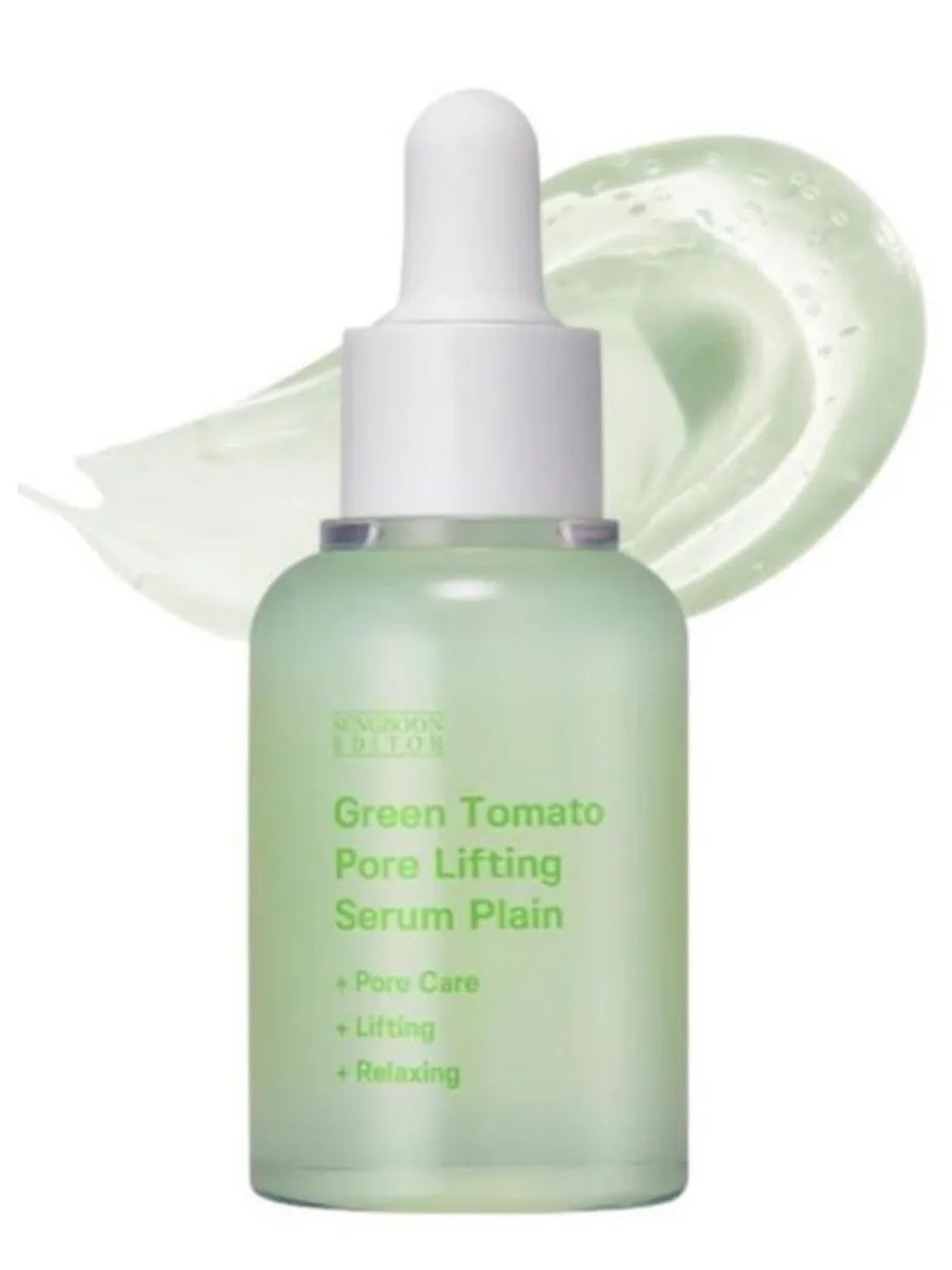 SUNGBOON Editor Green Tomato Green Tomato Lifting Serum Plain is an effective skincare treatment designed to reduce the appearance of pores and improve overall skin tone. Enriched with green tomato extract, known for its astringent properties, the formula helps control sebum production, preventing clogged pores. The serum's lightweight texture absorbs quickly without leaving a sticky feeling, leaving a velvety feel on the skin. Regular use of the Green Tomato Lifting Ampoule helps reduce pores, even out skin texture, and impart a healthy glow.