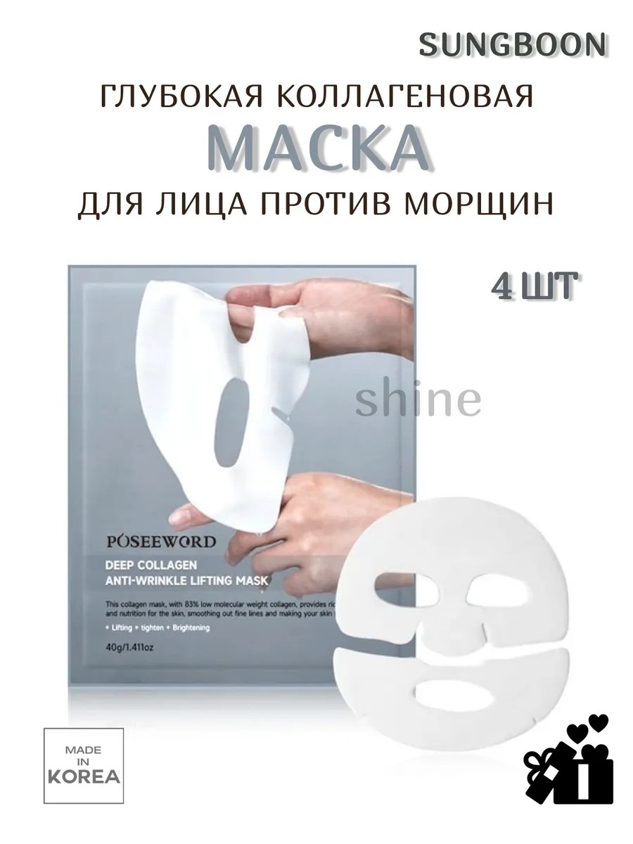 SUNGBOON EDITOR Deep Collagen Anti Wrinkle Lifting Mask 4ea – это профессиональная маска для лица, разработанная для интенсивного ухода за кожей.