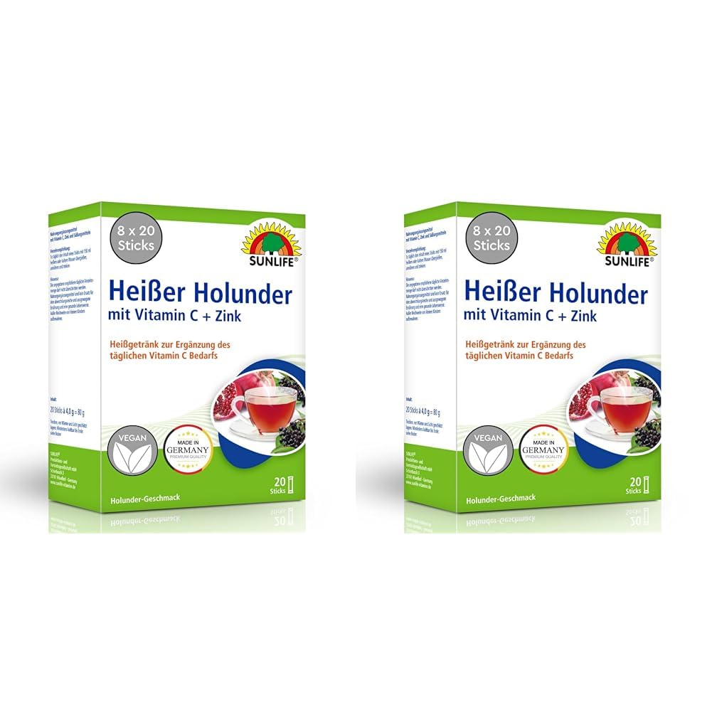 SUNLIFE Heißer Holunder mit Vitamin C Zink - 1x20 Sticks mit Granatapfel Pulver - Heißgetränk zur Unterstützung des Immunsystems - pro Tagesdosis 240 mg Vitamin C 2,5 mg Zink (Packung mit 2)