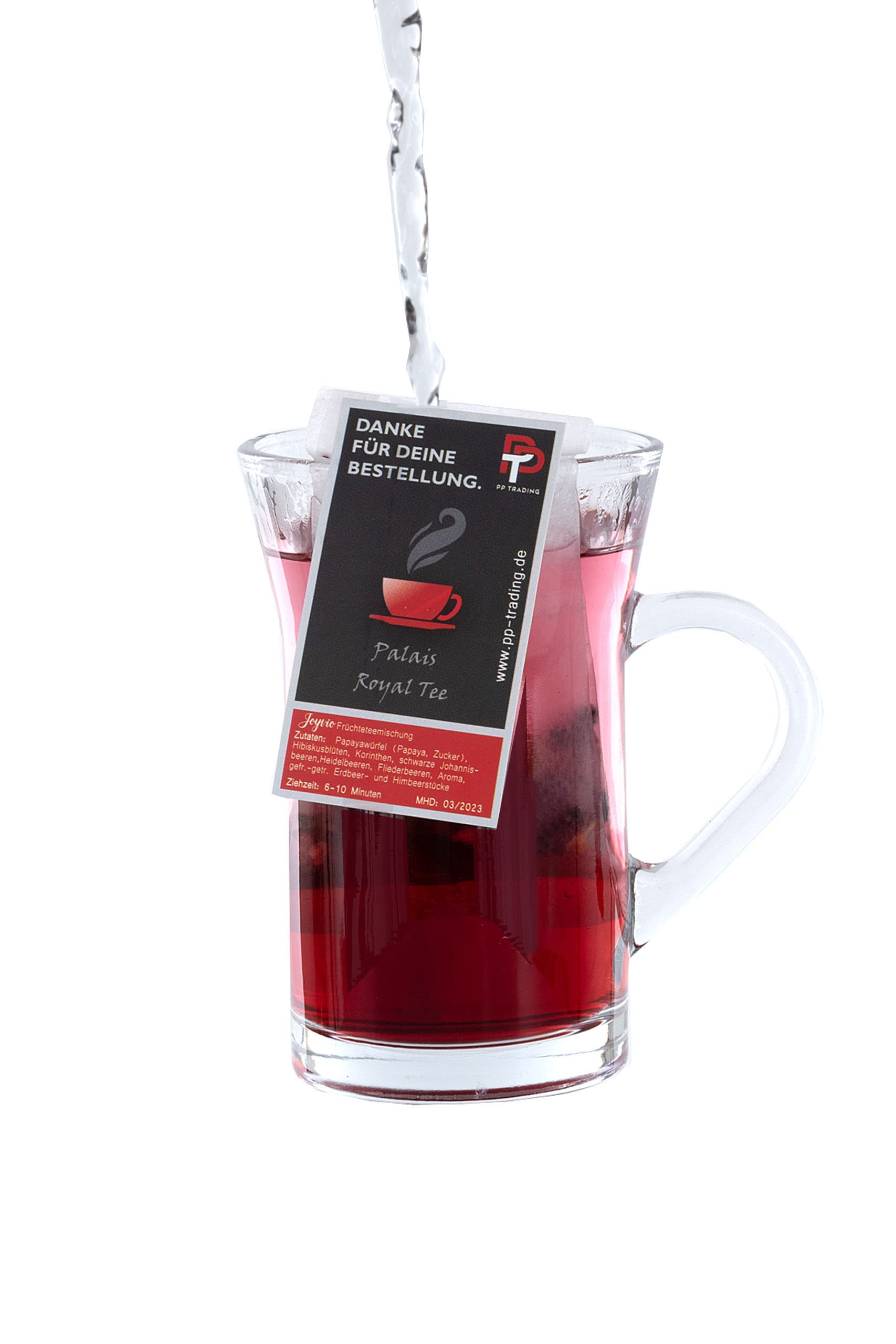 DESCRIPTION DU PRODUIT Sachet de thé Palais Royal Thé – emballé individuellement pour que l'arôme reste complètement préservé et qu'il ne perde pas son intensité. Plaisir du thé rouge, beau à regarder, agréable à boire. Complètement arrondi au goût avec une note fruitée en pâte. Super savoureuse même en été comme boisson froide. Grande variété d'écriture, thé aux fruits, thé rouge, thé puissant, thé fort. Valeurs nutritionnelles moyennes pour 100 ml d'énergie en kJ29KJ en graisses kcal7KCAL 0,2 G dont acides gras saturés 0,1 G glucides 1,2 G dont sucre 0,7 G Protéines 0,2 G Salz0,01 G Les données nutritionnelles ont été calculées sur la base de la recette. Les valeurs nutritionnelles ne sont pas des valeurs analytiques. Les valeurs nutritionnelles se réfèrent à 100 ml d'infusion pour 2,5 g de thé et 10-12 minutes de temps d'infusion.