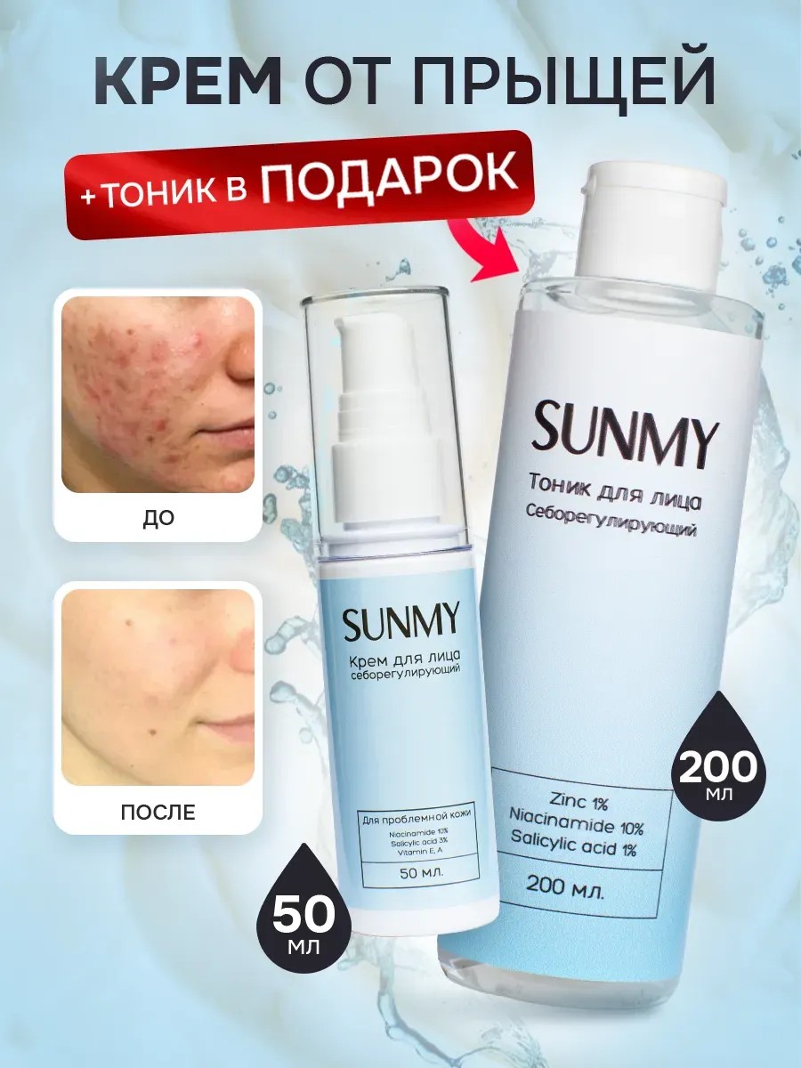 Так же, в подарок идет тоник себорегулирующий от прыщей и несовершенства кожи.