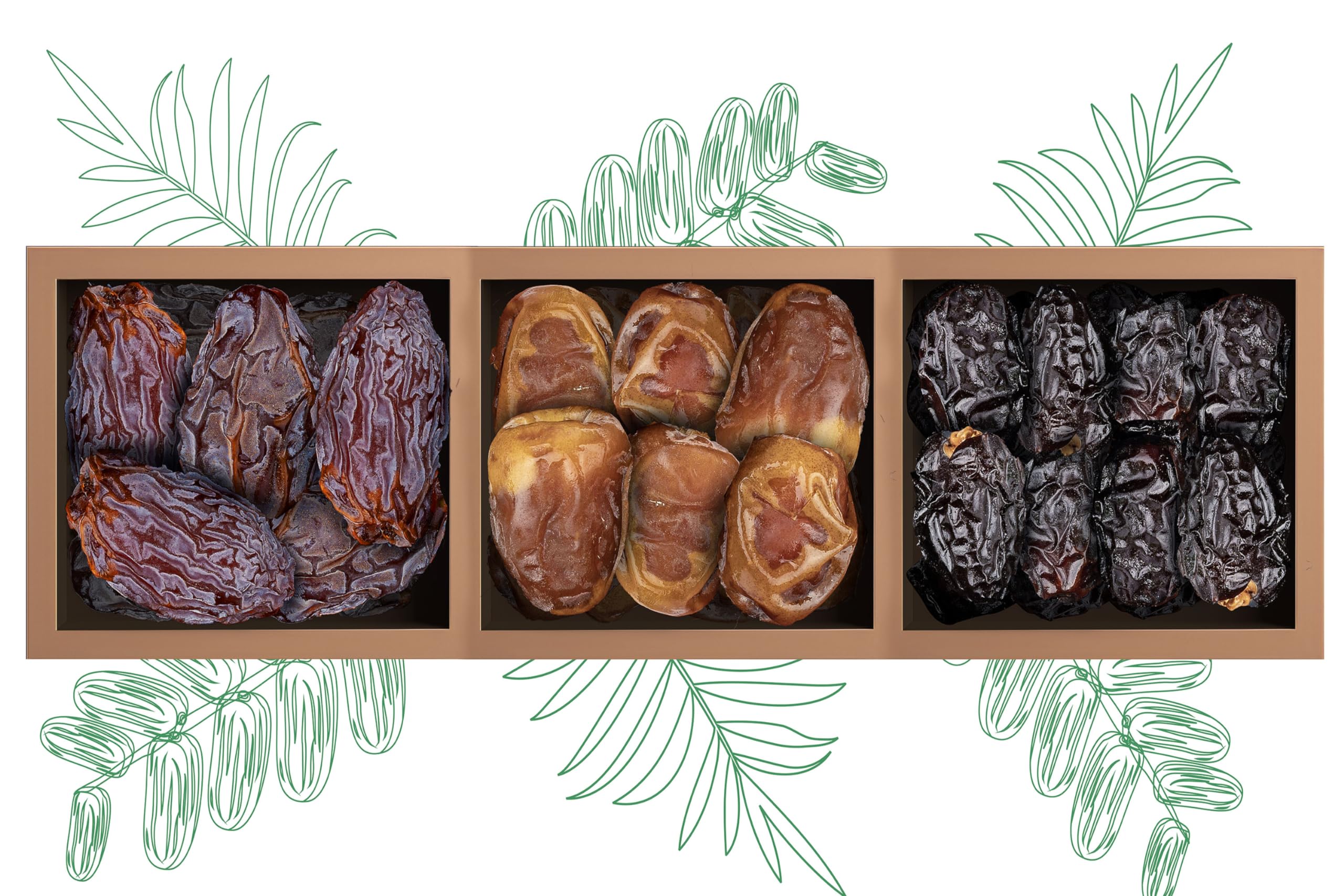 The 3-Variety Tasting Pack – Medjool, Sukkari Rotab, and Ajwa – is the perfect choice for anyone who appreciates the diversity and flavor of dates. Each variety in this tasting pack offers a unique taste experience. Medjool is known for its sweet and juicy texture, while Sukkari Rotab is famous for its natural sweetness and delicate consistency. Ajwa is a rare and prized date variety known for its intense flavor and rich nutrients. Each pack contains a carefully selected assortment of the highest quality dates and comes in a resealable package to maintain freshness. This tasting pack is perfect for enjoying on your own or sharing with friends and family. Try the 3-Variety Tasting Pack – Medjool, Sukkari Rotab, and Ajwa – and discover the distinctive taste and nutrients each variety has to offer. INGREDIENTS Medjool, Sukkari Rotab, and Ajwa, all with pits