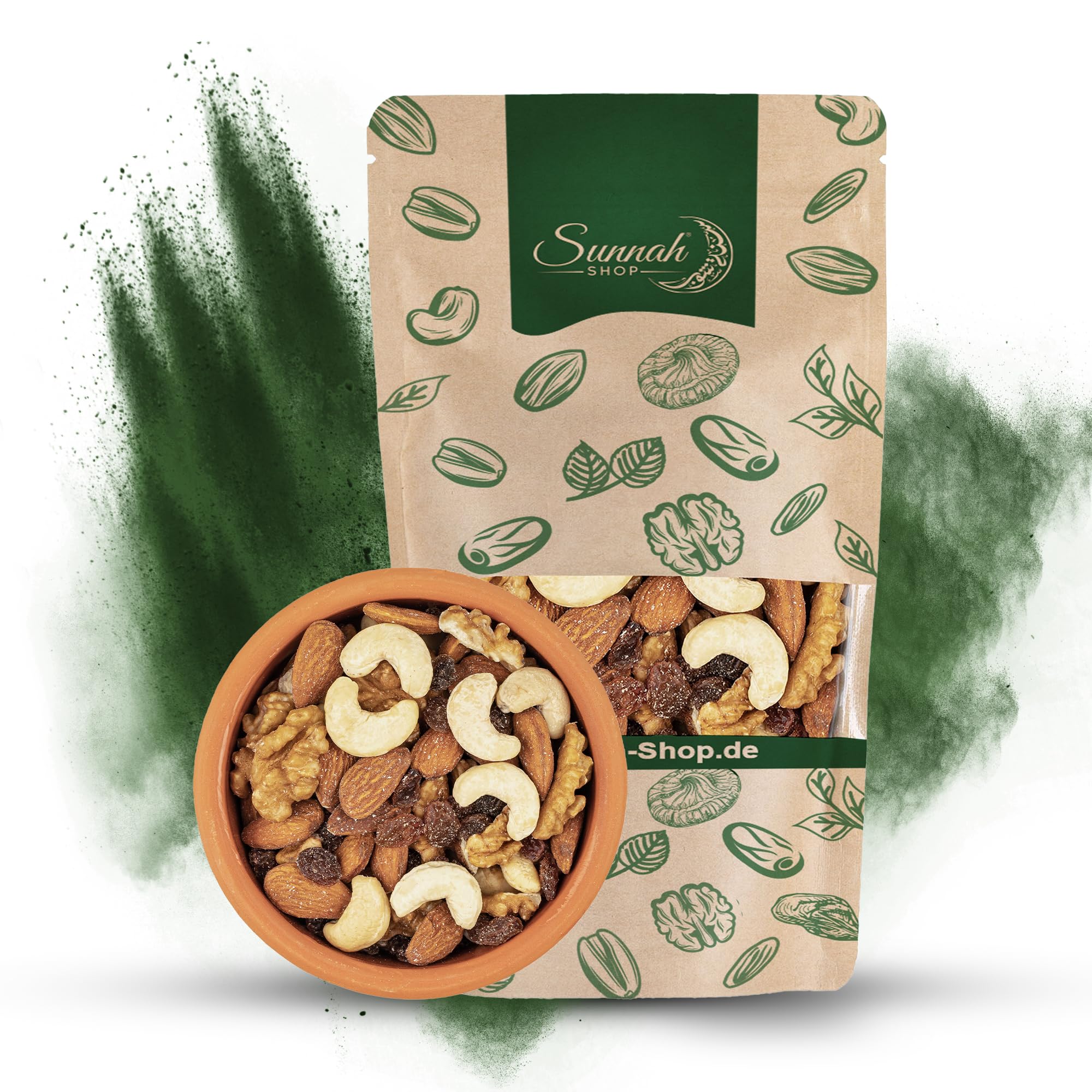 This mix of cashews, almond kernels, walnut kernels, and raisins is a delicious and nutritious blend of high-quality nuts and dried fruit. Cashews and almonds are rich in healthy fats, protein, fiber, and important nutrients such as magnesium and vitamin E. Walnut kernels provide omega-3 fatty acids, while raisins offer natural sweetness and antioxidants. This nut mix is all-natural, with no artificial flavors or additives, and is perfect as a healthy snack for salads, cereals, and baked goods. It's also an excellent source of plant-based protein and can therefore be a good alternative for vegans or vegetarians. With its crunchy texture and balanced combination of sweet and nutty flavors, this nut mix is a perfect choice for anyone looking for a healthy and tasty alternative to traditional snacks. INGREDIENTS Cashew kernels, almonds, walnut kernels, raisinsSunnah Shop Mélange de noix naturel 5 kg non torréfié non salé Variété fruitée de noix de cajou, d'amandes, de noyaux de noix et de raisins secs Protéines végétaliennes Nourriture étudianteDESCRIPTION DU PRODUIT DESCRIPTION DU PRODUIT Le mélange de noix de cajou, de noyaux d'amandes, de noyaux de noix et de raisins secs est un mélange délicieux et nutritif de noix de haute qualité et de fruits secs. Les noix de cajou et les amandes sont riches en graisses saines, protéines, fibres et nutriments importants tels que le magnésium et la vitamine E. Les noyaux de noix fournissent des acides gras oméga-3, tandis que les raisins secs contiennent une douceur naturelle et des antioxydants. Ce mélange de noix est naturel, sans arômes ni additifs artificiels, et est parfait comme collation saine pour les salades, les céréales et les pâtisseries. Le mélange est également une excellente source de protéines végétales et peut donc être une bonne alternative pour les végétaliens ou les végétariens. Avec sa texture croquante et sa combinaison équilibrée de goût sucré et de noisette, ce mélange de noix est un choix parfait pour tous ceux qui recherchent une alternative saine et savoureuse aux collations traditionnelles. INGRÉDIENTS Noyaux de cajou, amandes, noyaux de noix, raisins secs