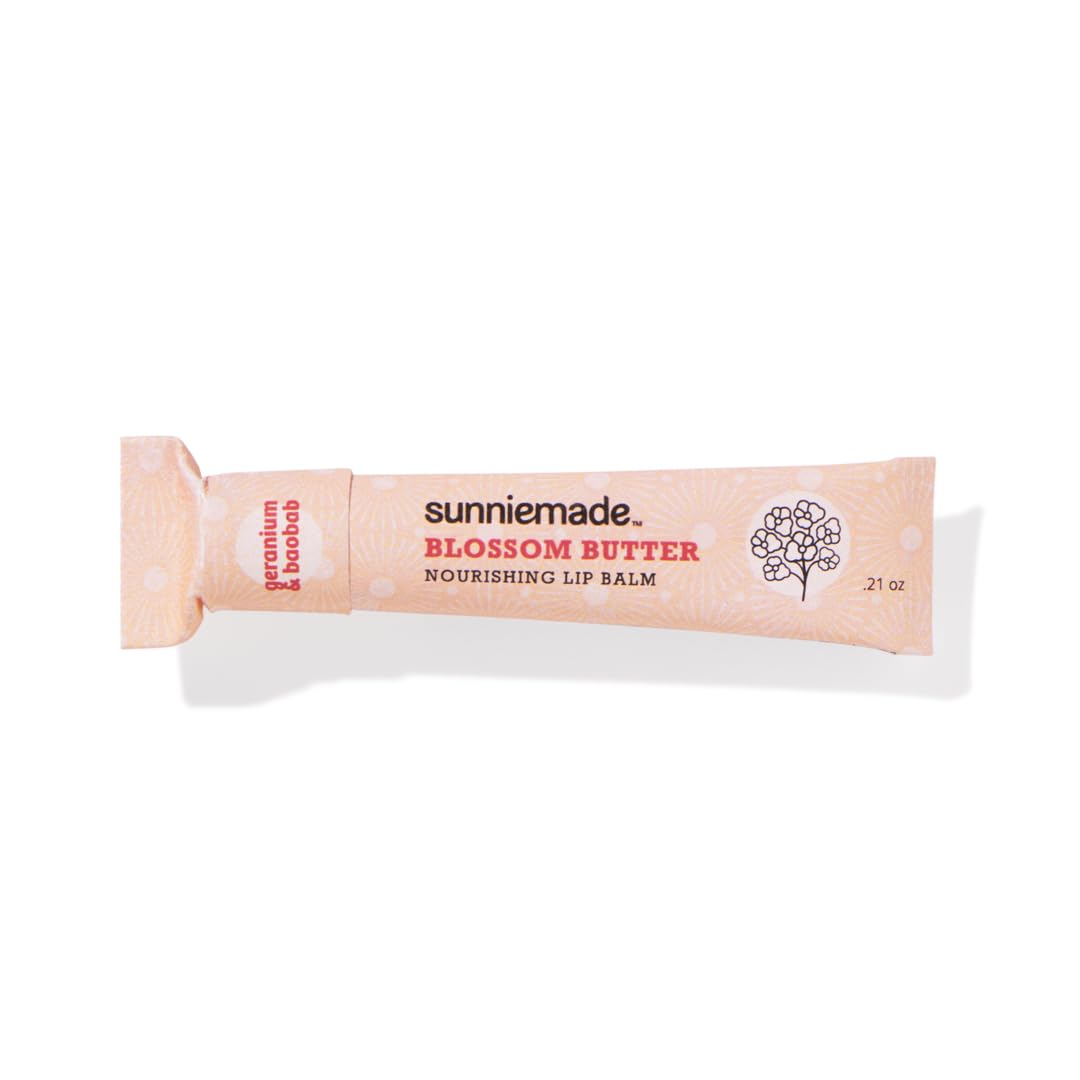 Sunniemade Nourishing Lip Balm - Blossom Butter Geranium Scent Softening Baobab Oil Natural & Vegan Plastic-free Packaging