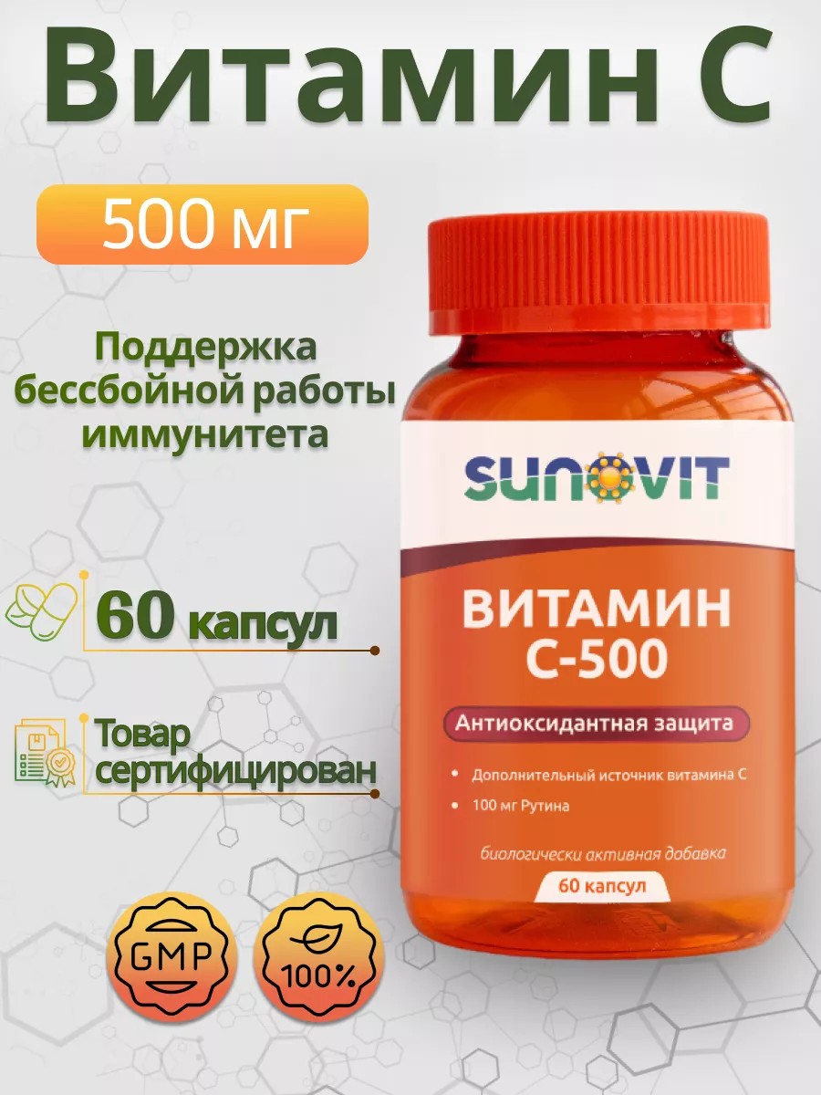 Витамин С-500 с рутином SUNOVIT, 60 капсул: Ваш надежный помощник для здоровья