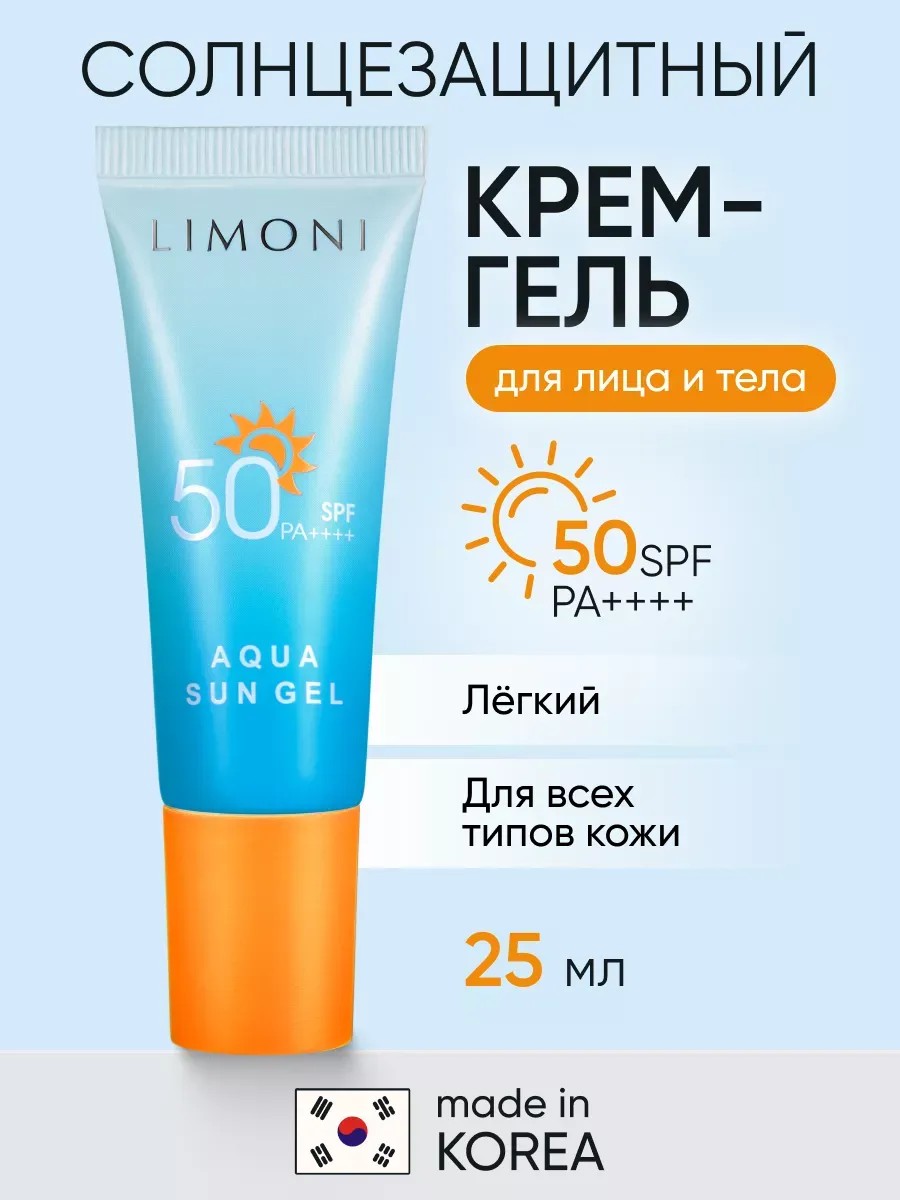 LIMONI SPF50 Sunscreen is a sun protection and skin care product. It provides reliable protection from the harmful effects of sun rays and UV radiation, preventing burns and reducing the risk of premature skin aging. Prepare your skin for a safe and even tan with this sunscreen, which offers maximum protection of SPF 50+, making it the best tanning cream for your body and face. This gel cream contains next-generation UV filters for enhanced protection from the sun and harmful rays. Its minimalist 25 ml size allows you to familiarize yourself with the product and take it with you wherever you go. This Korean 50SPF sunscreen contains many natural and organic ingredients: vitamin B3 and adenosine improve microcirculation and vascular tone, providing an anti-aging effect. Purslane extract has a wound-healing effect and stimulates cell regeneration. This sunscreen gel cream protects skin from UVA and UVB rays (SPF 50+/PA++++). Its filters absorb ultraviolet rays before they can harm the skin. It provides highly effective protection against sunburn and sun-related age-related changes, preventing the appearance of wrinkles, age spots, and dehydration. The formula is enhanced with panthenol, hyaluronic acid, and natural extracts to maintain skin's moisture balance and softness and elasticity. This non-greasy, non-sticky sunscreen gel applies easily without leaving a white residue. It is alcohol-free. This Limoni sunscreen gel cream offers maximum protection and will be an indispensable companion for travel, vacation, and any trip. It is recommended to apply the cream to the entire body, focusing on the most vulnerable areas: face, shoulders, neck, nose, and hands. Made in the Republic of Korea.