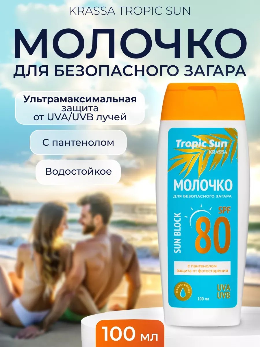 Молочко от загара для тела SPF 80 обеспечивает максимальную степень защиты от вредных УФ-лучей, которые могут привести к ожогам, преждевременному старению кожи. Активные ингредиенты: Комплекс фотостабильных UVA/UVB-фильтров органической и минеральной природы для эффективной защиты кожи от вредного воздействия УФ-лучей, защищает от повышенной пигментации и фотостарения. Экстракт томата обладает питательными, увлажняющими свойствами, усиливает защиту от ультрафиолета и препятствует преждевременному старению кожи. Экстракт моркови является сильным антиоксидантом, оказывает регенерирующее действие, устраняет шелушение, придает коже гладкость и нежность. Молочко с спф 40 подходит для лица и для тела. Применение: Молочко с spf для тела нанести на кожу перед выходом на солнце. Повторять нанесение каждые 1,5–2 часа и/или после купания, вытирания полотенцем. Меры предосторожности: возможна индивидуальная непереносимость ингредиентов состава. Увлажнение молочко не стоит наносить на область вокруг глаз. В случае попадания в глаза немедленно промыть водой. Избегать контакта с одеждой до полного впитывания. Не рекомендуется пребывание на солнце в период максимальной солнечной активности. Увлажняющее молочко станет отличным средством дневного ухода за кожей, как солнцезащитный крем, спрей или масло.