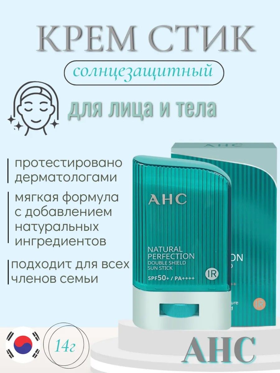 Стойкий и легкий универсальный солнцезащитный стик AHC Natural Perfection Double Shield Sun Stick SPF 50+ PA++++ / СПФ 50 обладает высокой степенью защиты от солнечных лучей, предупреждает появление нежелательной пигментации и поддерживает молодость кожи.