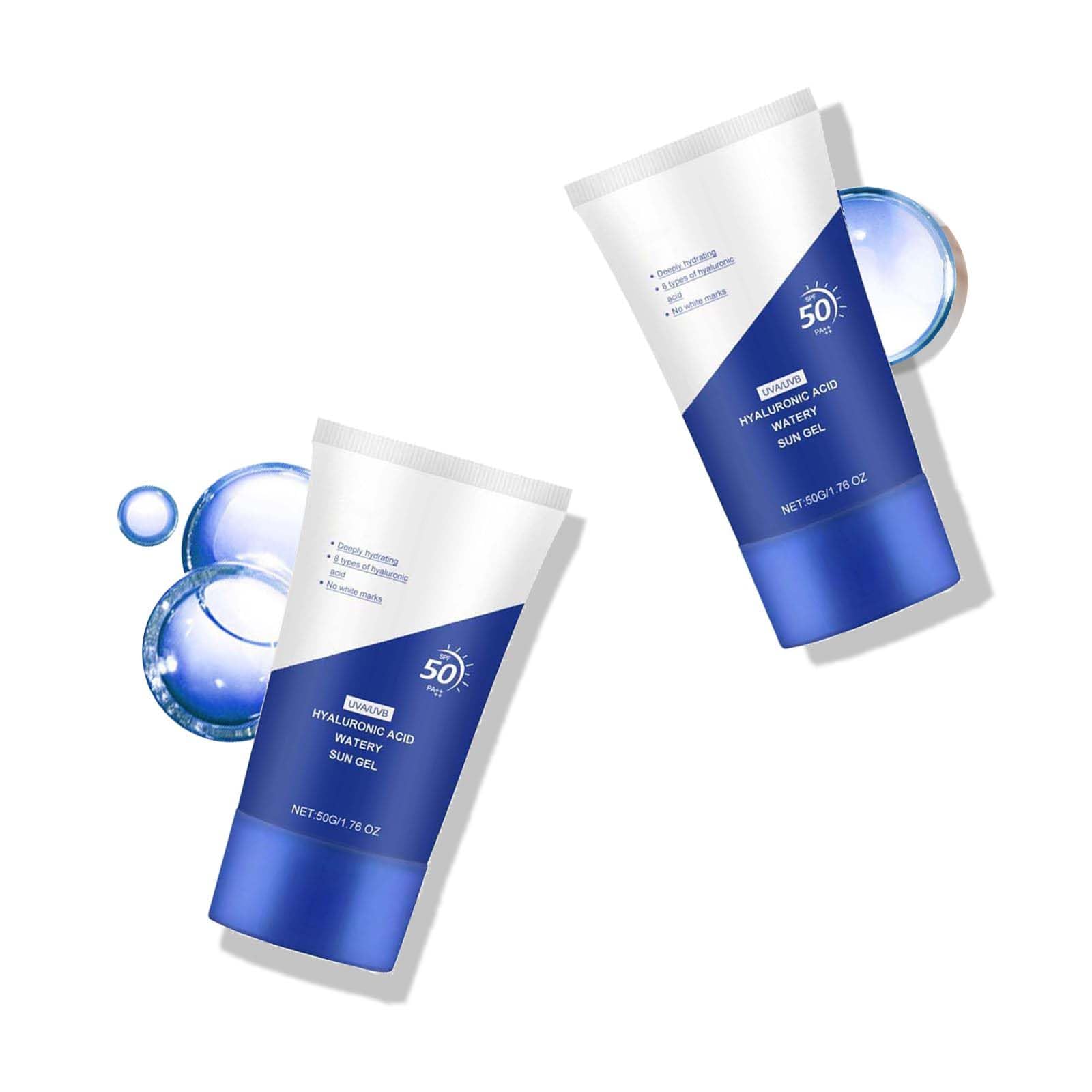 Sunscreen with Hyaluronic Acid SPF 50 Aqueous Solar Hyaluronic Acid Gel for Face Moisturizing Sunscreen Long Lasting Moisturizing Sweatproof for All Skin Types