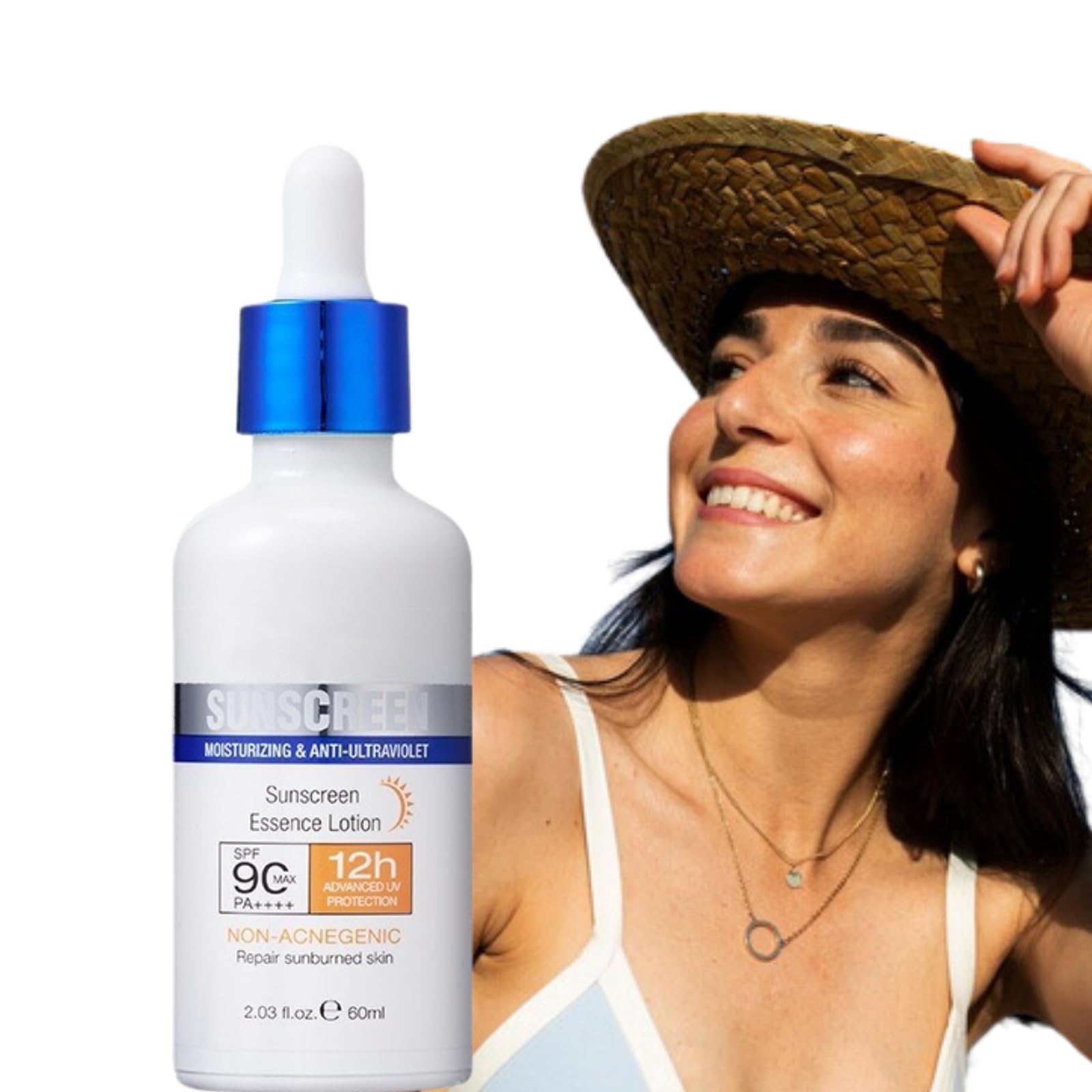 Product Name:Sunscreen Essence Lotion  Product Quality: 60ML  Usage: Protect sun damaged while moisturize and nourish skin, SPF90 & PA++++  Shelf Life: 3 years  Product Features:  ?Natural and organic ingredients infused with Aloe Vera Extract provide broad spectrum UVA/UVB sun protection while nourishing and revitalizing the skin, making it perfect for all skin types, especially sensitive skin.  ? Our Sunscreen SPF 90 not only protects the skin from sun damage, but also helps prevent premature aging caused by harmful UV rays, leaving skin smooth, glowing, and highly hydrated.  ? Formulated with a non-greasy, non-sticky formula, our moisturizing sunscreen absorbs quickly and provides a smooth, bare-skin feel without leaving any white marks on the skin or clothes.  ? Keep your skin moisturized and protected from UV damage with our sun cream SPF 90. Suitable for sensitive, dry, and oily skin types, it effectively prevents dryness caused by sun exposure.  ? Apply our SPF 90 Suncream as the last step of your skincare routine, 30 minutes before going out for optimal sun protection. It's also ideal for swimming and sports, and can be reapplied after towel-drying. Perfect for use by women, men, girls, and boys alike.  Tips:  For external use only.  If there is redness or allergic reaction, please stop using it immediately.  Please keep it away from children.  Store in a cool and shade place.     DIRECTIONS   Apply sunscreen as the last step of your skincare routine, 30 minutes before sun exposure. Reapply after towel-drying, especially after swimming or perspiring.    SAFETY WARNING   For external use only. Avoid contact with eyes. Keep away from naked flame or direct heat sources   See more?For All Kinds Of Skin Types?Our face sunscreen made and tested with you in mind:suitable for all skin types, and use it on face and body, you can rest assured that our sunblock. It's also non-comedogenic, meaning it won't clog pores or cause breakouts. ?Lightweight & Water Proof?Light and non-greasy, the sun lotion SPF 50 formula offers an instant and long-lasting mattifying effect without leaving any sticky residue behind.Non greasy sunscreen reapply frequently to maintain protection, especially after perspiring, swimming or towelling. ?Anti-ultraviolet for 12h & Moisturizing?This moisturizing sunscreen can resist ultraviolet rays for 12h, has alight and watery texture, can repair mild skin sunburn, and is not greasy or stuffy when applied to the skin, and has no acne causing property. Sun cream face can also brighten and whiten the skin,making the complexion more even and keeping the skin hydrated for a long time. ?For Outdoor Sun Protect?This sun cream is mild, fresh, non-greasy, lightweight, smooth texture, easy to apply.Whether you're going for a walk, hitting the beach, or simply running errands, our sunscreen face is a good choice for sun block in summer. ?SPF 90 Sunscreen?Sunscreen with SPF 90 helps protect your skin against harmful UVA and UVB rays; Our sun lotion prevent sun exposure and sun damage, moisturize skin and prevent premature aging.