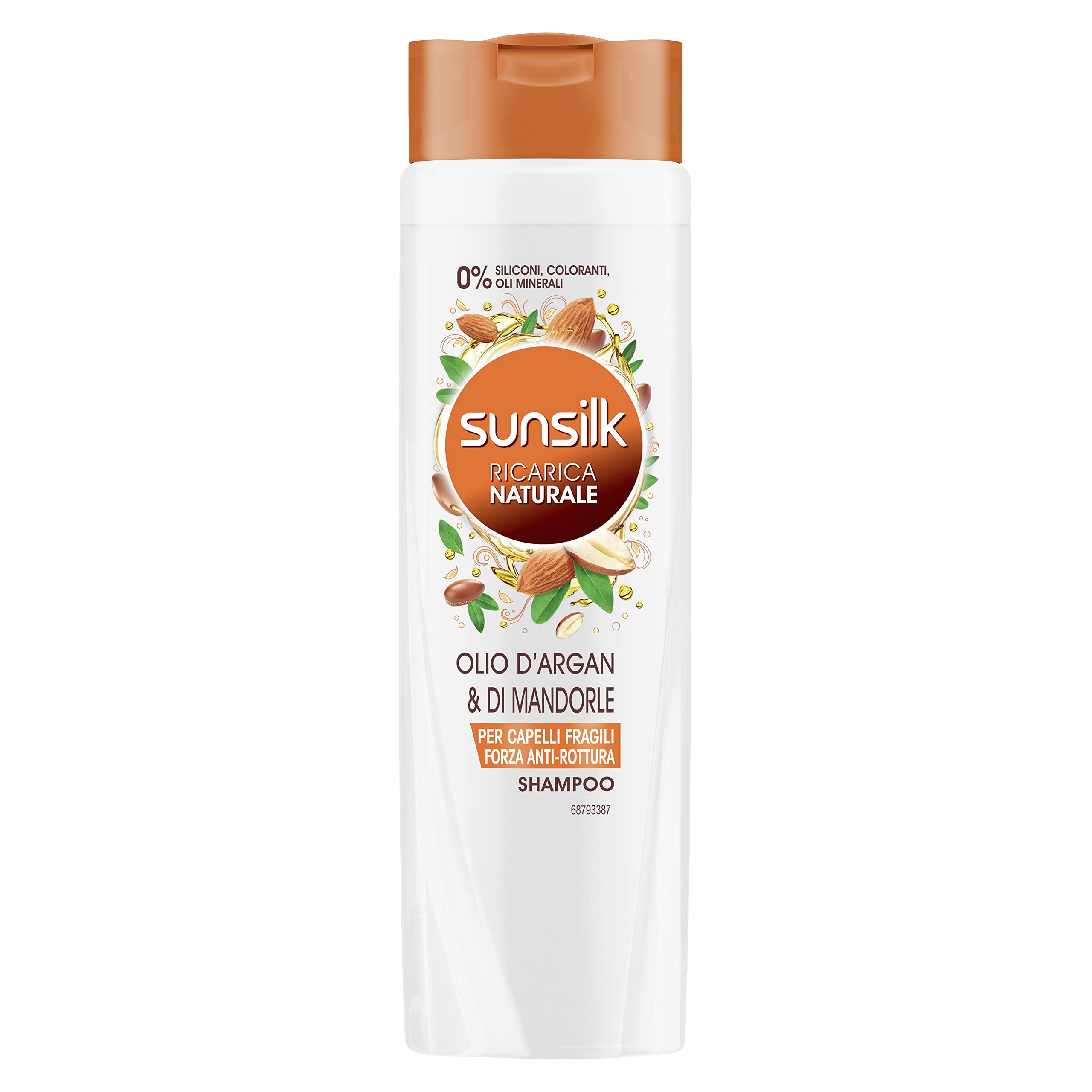 DESCRIPTION DU PRODUIT SUNSILK Recharge naturelle Shampoo pour vos cheveux fragiles. Cette formule, avec huile d'Argan et de Mandorle, nettoie et apporte une force anti-rupture à vos cheveux. Il nourrit et renforce les cheveux des racines aux pointes en les rendant visiblement forts Avec l'utilisation combinée de shampooing et de baume Sunsilk Recharge naturelle Huile Argan Amande par rapport à un shampoing générique