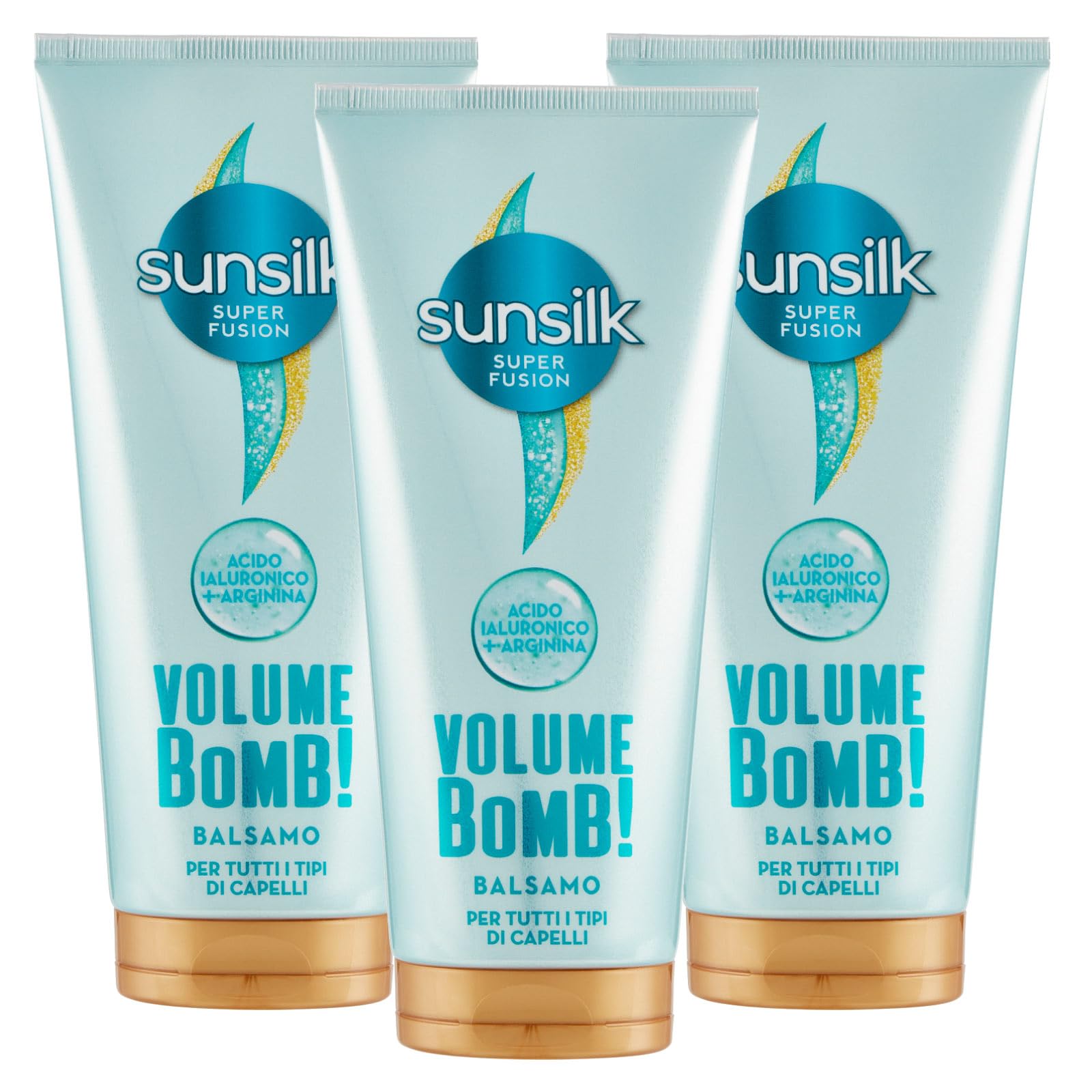 Sunsilk Volume Bomb Baume pour tous les types de cheveux Formule Super Fusion 24h avec acide hyaluronique et arginine à action nutritive hydratante volumisante illuminante – 3 flacons de 180 ml 180 ml (Confezione da 3)