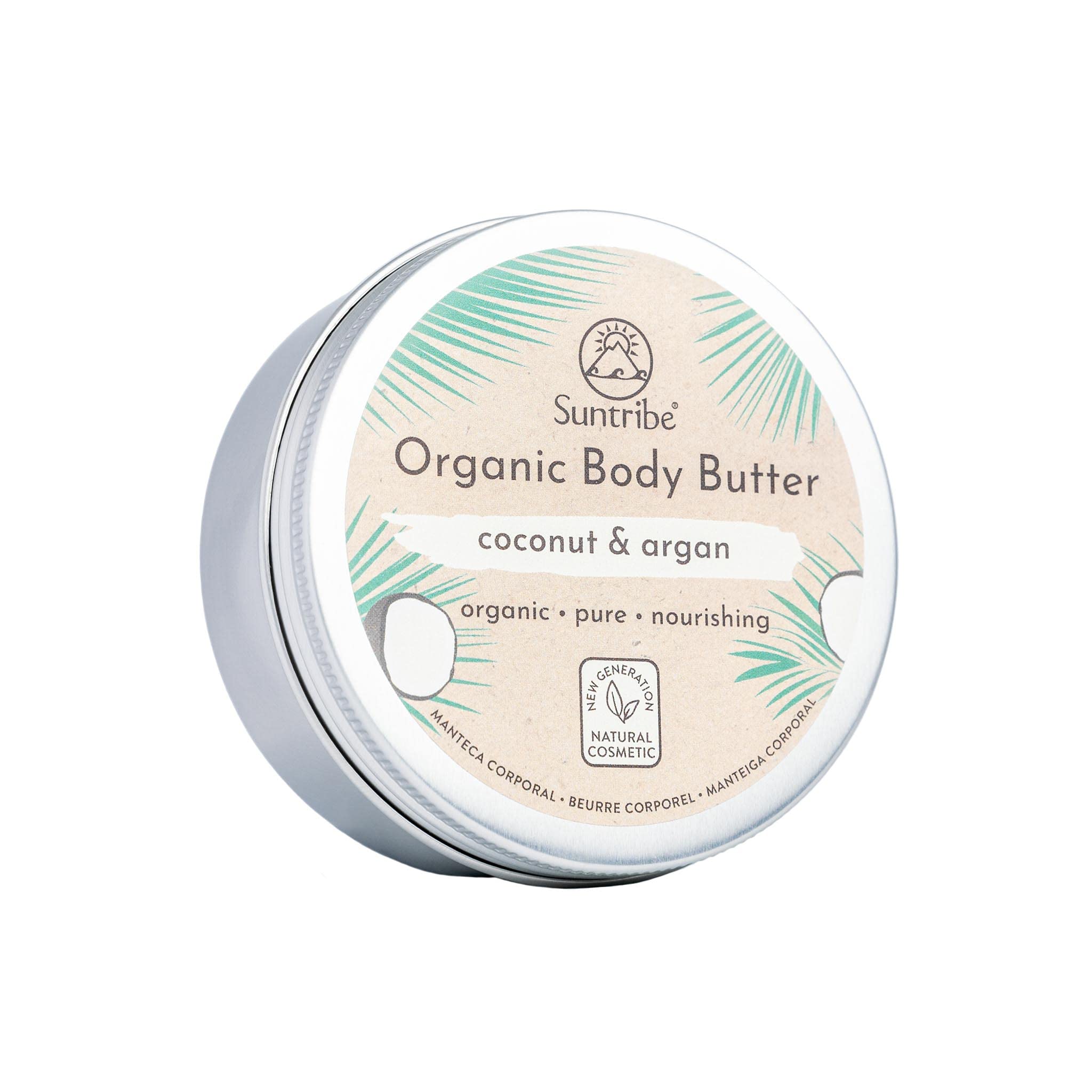 0% additives,Finally a carefree body butter.Free from perfume, microplastics, preservatives and synthetic chemicals.Natural boost,By nature of vitamin E and B, jojoba oil supports the skin repair, while argan oil gives your skin a natural boost and restores its elasticity.Moisturizing & nourishing,Even with very dry skin, coconut oil gives a well -groomed and smooth skin feeling, while shea butter and cocoa butter donate deep and long -lasting moisture.Bio & gently to the skin,Pure and rich formula with five high -quality, 100% biological and vegan ingredients.Ideal for normal, sensitive and (very) dry skin.100% natural body butter,Do you want to revive dry skin?We have the solution!This rich body butter donates long -lasting intensive moisture and maintains the skin without synthetic components.Packed in a practical can without plastic.0% ZUSÄTZE,Endlich eine sorgenfreie Körperbutter. Frei von Parfüm, Mikroplastik, Konservierungsstoffen und synthetischen Chemikalien. NATÜRLICHER BOOST,Von Natur aus reich an Vitamin E und B, unterstützt Jojobaöl die Hautreparatur, während Arganöl deiner Haut einen natürlichen Boost gibt und ihre Elastizität wiederherstellt. FEUCHTIGKEITSSPENDEND & PFLEGEND,Kokosöl verleiht selbst bei sehr trockener Haut ein gepflegtes und glattes Hautgefühl, während Sheabutter und Kakaobutter tiefe und langanhaltende Feuchtigkeit spenden. BIO & SANFT ZUR HAUT,Pure und reichhaltige Formel mit fünf hochwertigen, 100% biologischen und veganen Inhaltsstoffen. Ideal für normale, empfindliche und (sehr) trockene Haut. 100% NATÜRLICHE KÖRPERBUTTER,Du willst trockene Haut wiederbeleben? Wir haben die Lösung! Diese reichhaltige Körperbutter spendet langanhaltende intensive Feuchtigkeit und pflegt die Haut ohne synthetische Bestandteile. Verpackt in einer praktischen Dose ohne Plastik.Suntribe Bio-Körperbutter Kokos & Argan - 150 ml, 100% Bio & Natürlich, Parfümfrei - Pflegend & Feuchtigkeitsspendend - Minimalistische Formel, Zero Waste, (Sehr) Trockene/Empfindliche Haut