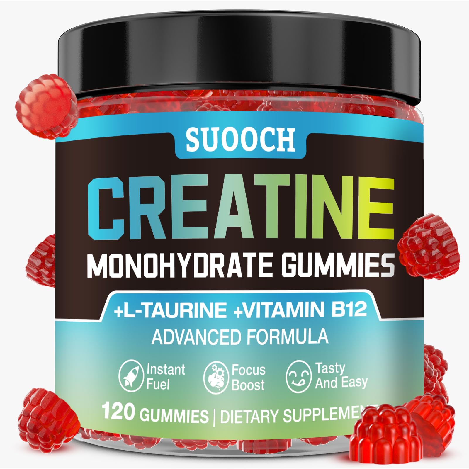 SUOOCH Creatine Gummies for Men & Women 120 Count Raspberry Flavor Creatine Monohydrate Gummies Creatine Monohydrate Supplement for Exercise Fitness Training Work & Travel - Delicious Portable