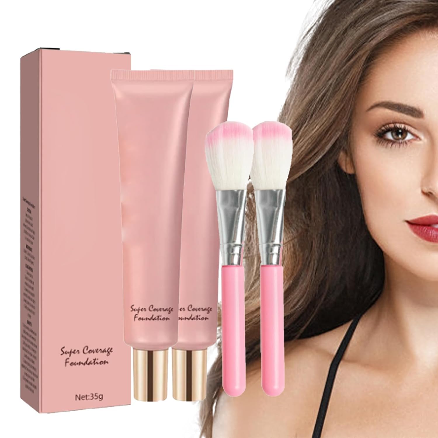 Specification: Name: Ultra Coverage Foundation with Buffing Brush Net Content: 35g Shelf Life: 3 Years Skin Type: Suitable for all skin types Products include: 1 2 3pcs Ultra Coverage Foundation with Buffing Brush 1 2 3pcs Brush Notes: 1. Please allow slight measuring deviation due to manual measurement. 2. Due to different monitors and lighting effects, the actual color of the item might be slightly different from the color showed on the picture.Suitable for all occasions Whether you are going to a party or commuting, it is the perfect choice. Delicate and smooth Suitable for daily use, creating a delicate and smooth skin feeling. Moisturizing concealer: Perfectly covers facial imperfections, equipped with soft bristles for easy makeup application. Waterproof and long-lasting The foundation is equipped with a waterproof and soft formula that blends perfectly with facial skin and does not remove makeup all day long. Achieving a natural look Perfectly matched with the foundation, the soft bristles ensure even distribution and blending of the foundation. Spécification: Nom : Fond de teint ultra couvrant avec brosse de polissage Contenu net : 35g Durée de conservation : 3 ans Type de peau : Convient à tous les types de peau Les produits incluent : 1 2 3 pièces Fond de teint ultra couvrant avec pinceau de polissage 1 2 3 pièces brosse Remarques: 1. Veuillez permettre un léger écart de mesure en raison de la mesure manuelle. 2. En raison des différents moniteurs et effets d'éclairage, la couleur réelle de l'article peut être légèrement différente de la couleur montrée sur l'image.Convient à toutes les occasions Que vous alliez à une fête ou que vous fassiez la navette, c'est le choix parfait. Délicat et lisse Convient pour un usage quotidien, créant une sensation de peau délicate et lisse. Anti-cernes hydratant : couvre parfaitement les imperfections du visage, équipé de poils doux pour une application facile du maquillage. Imperméable et longue durée Le fond de teint est équipé d'une formule imperméable et douce qui se fond parfaitement avec la peau du visage et ne démaquille pas toute la journée. Obtention d'un aspect naturel Parfaitement assortis au fond de teint, les poils doux assurent une répartition et un mélange uniformes du fond de teint.