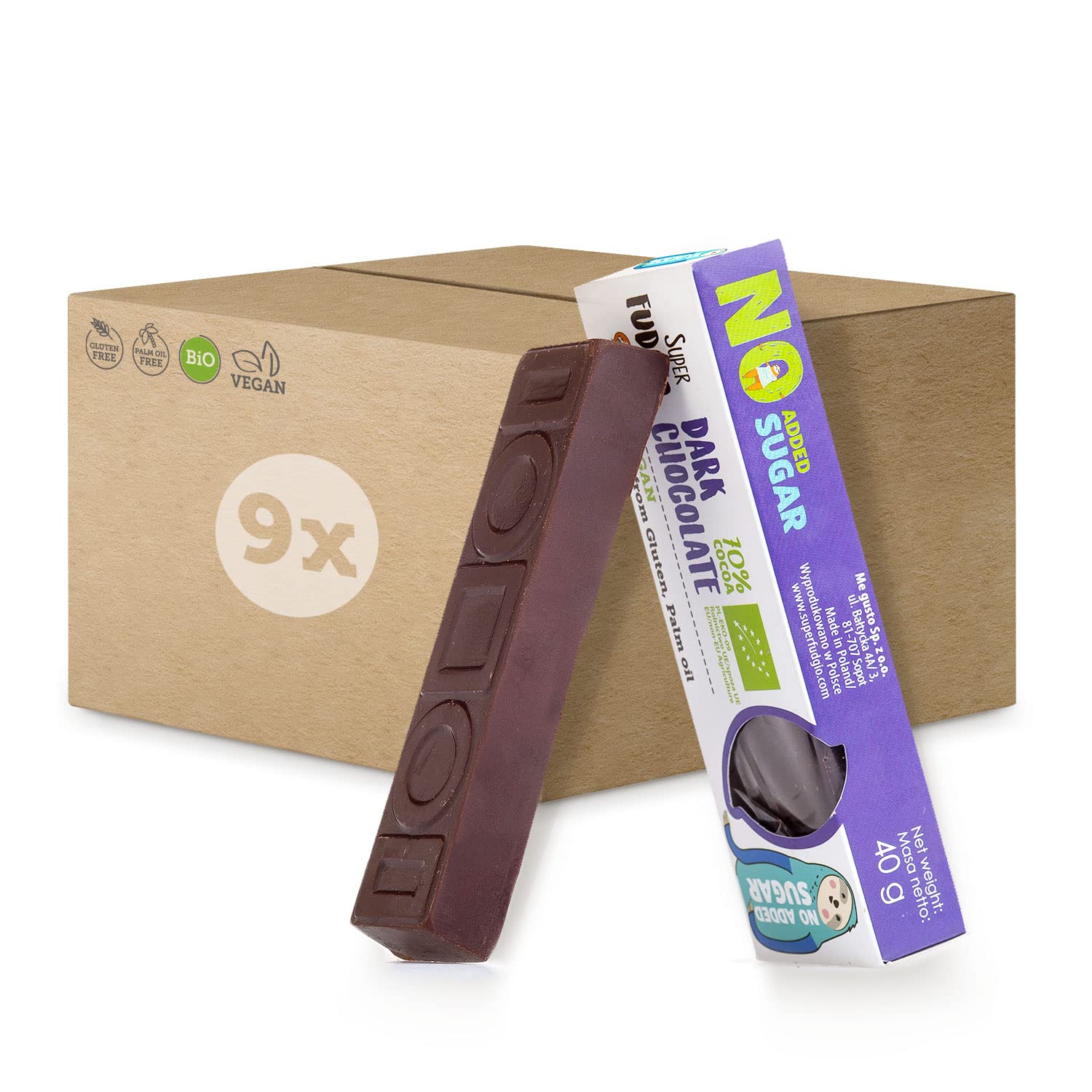 SUPER FUDGiO SUPER FUDGiO 9 x Sugar Free Organic Chocolate Bars Gluten Free Sugar Free Chocolate Snack Bitter Chocolate